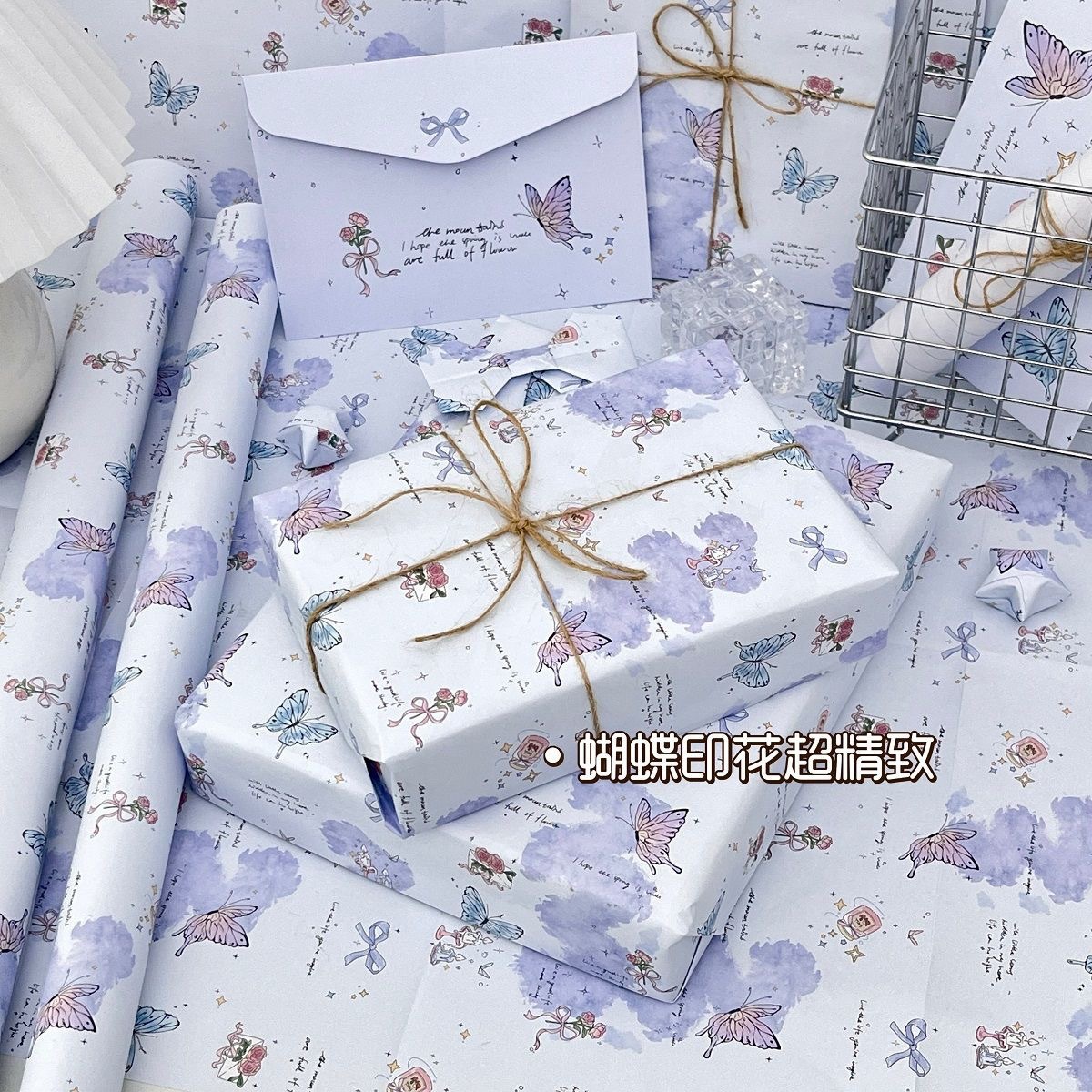 blue pink blooming butterfly wrapping paper; each pack has 6 folded wrapping paper 50 * 70cm