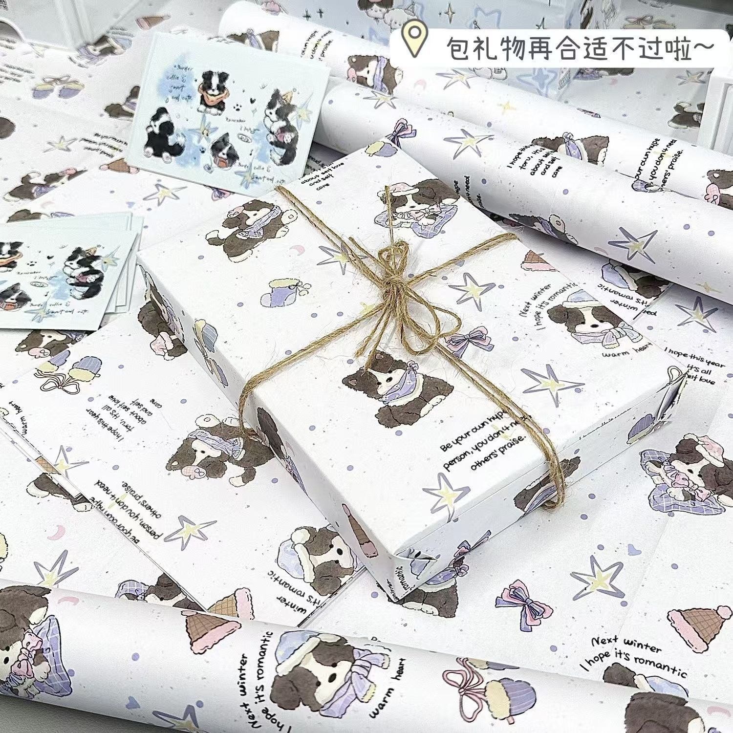 border collie puppy; each pack has 6 folded wrapping paper 50 * 70cm