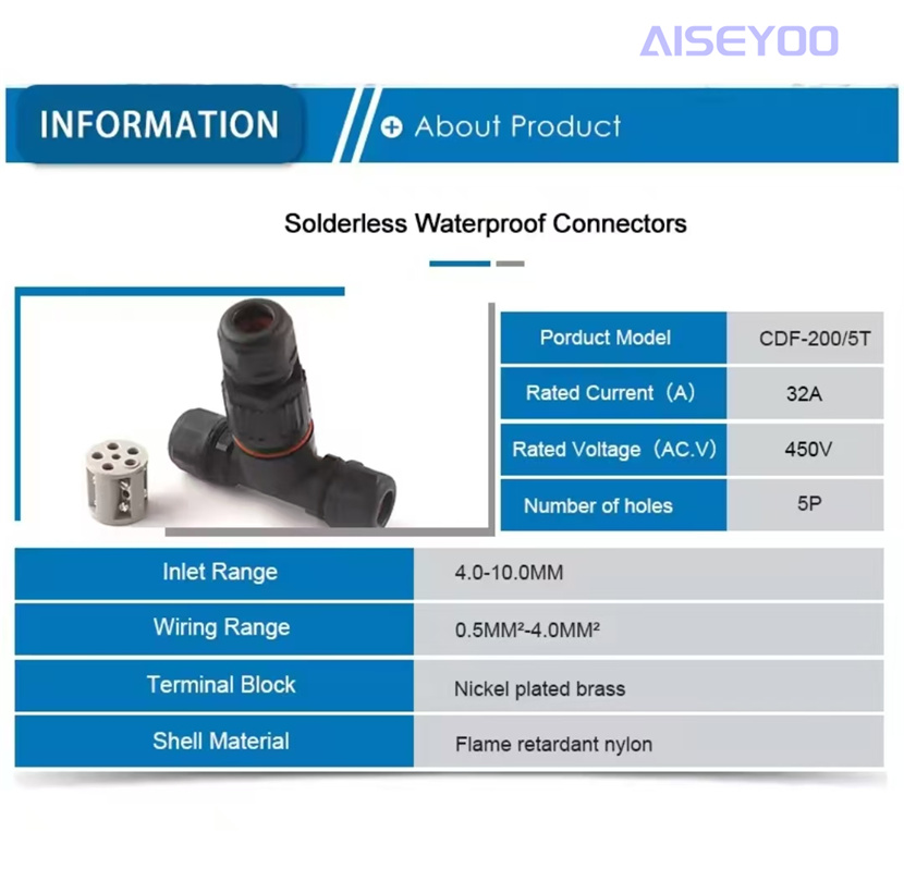 outdoor buried waterproof y-type ip68 5-core welding-free connecting wire terminal outdoor waterproof tee-3p 中文版