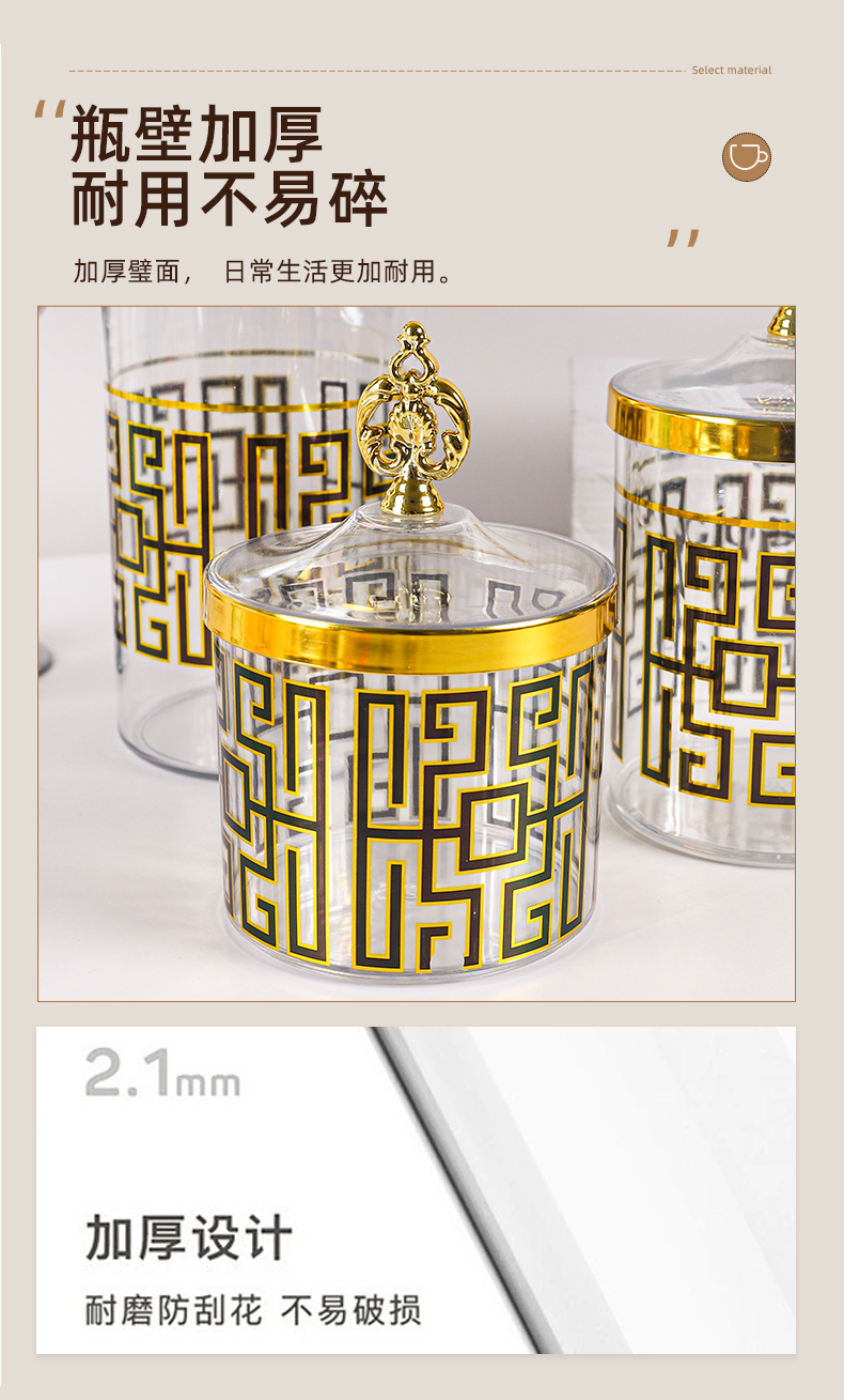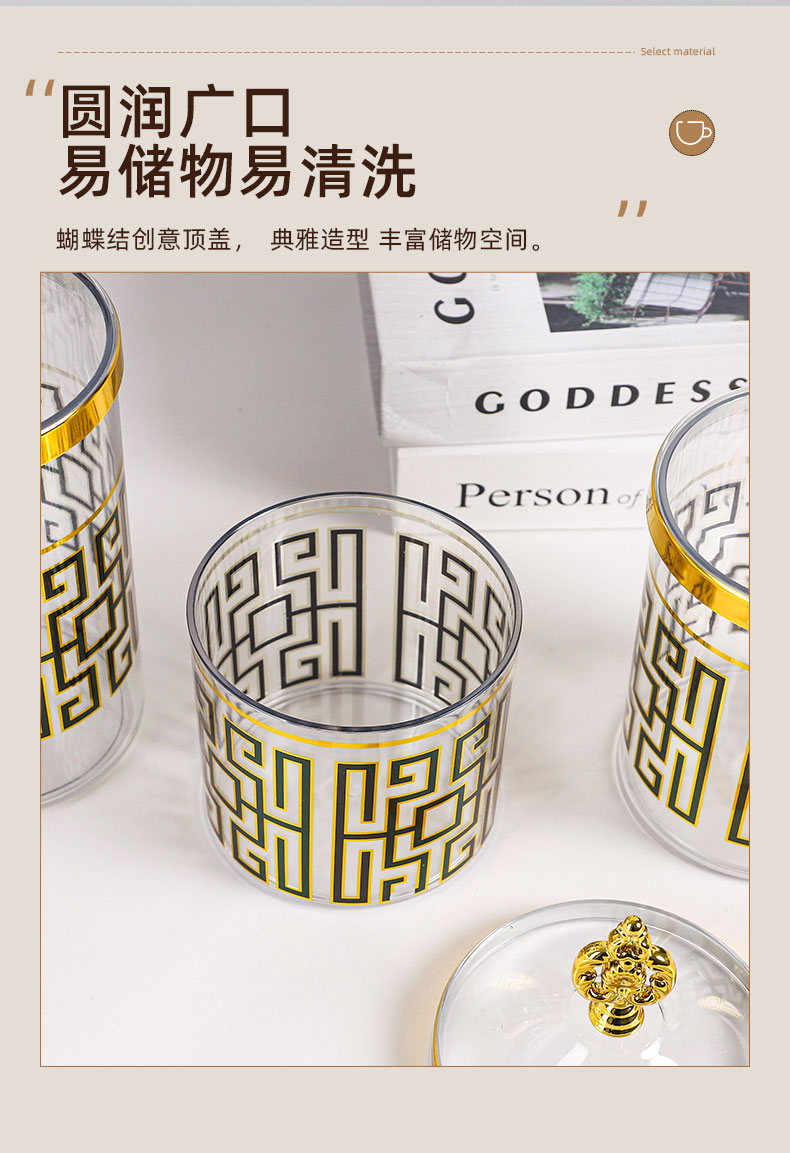 creative golden trim sealed jar with lid petal handle transparent plastic sealed storage jar tea candy storage good stuff 中文版