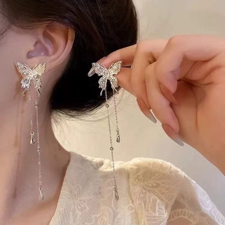 asymmetric butterfly tassel ear studs