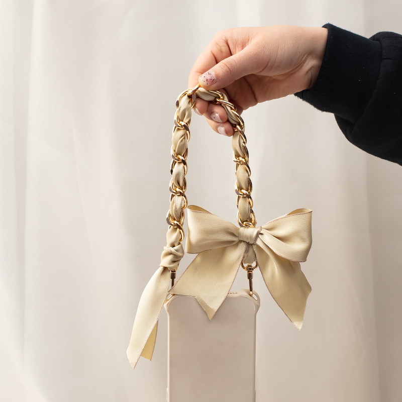 beige bow mobile phone charm with transparent clip