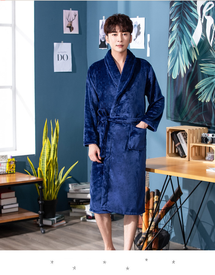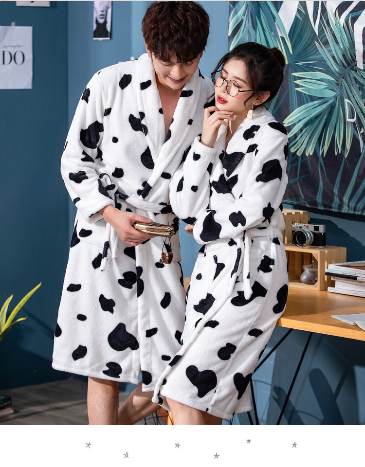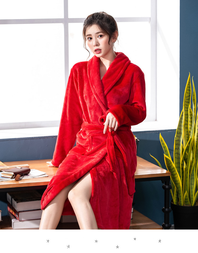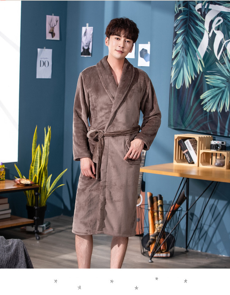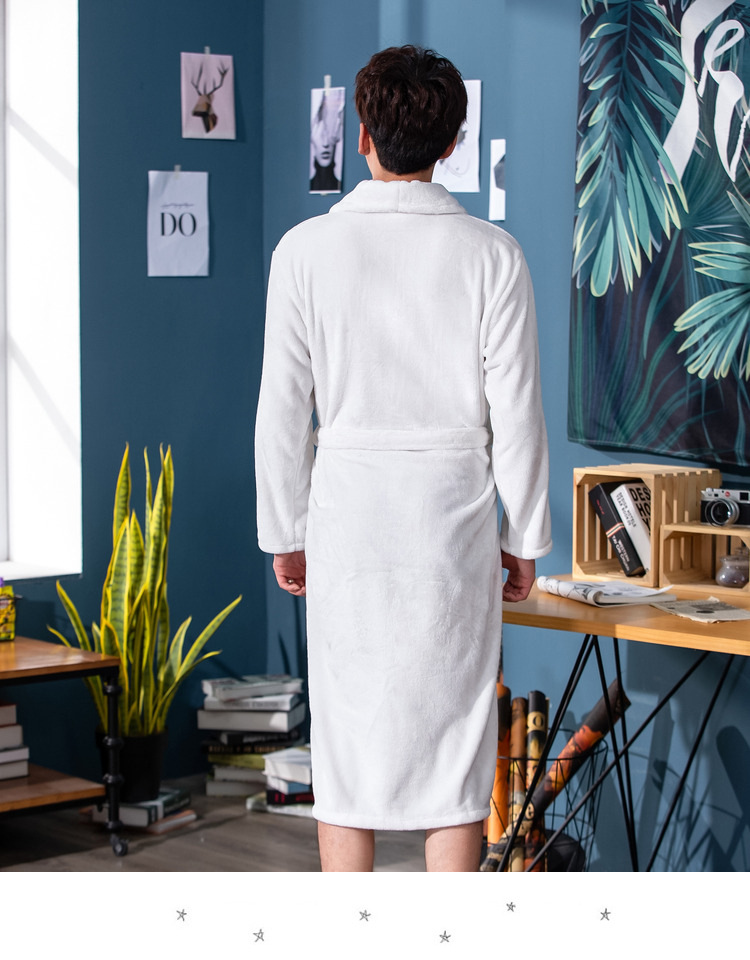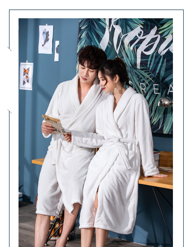 bathrobe couple flannel hotel nightgown autumn and winter white bathrobe women's morning gowns long coral fleece men's pajamas 中文版