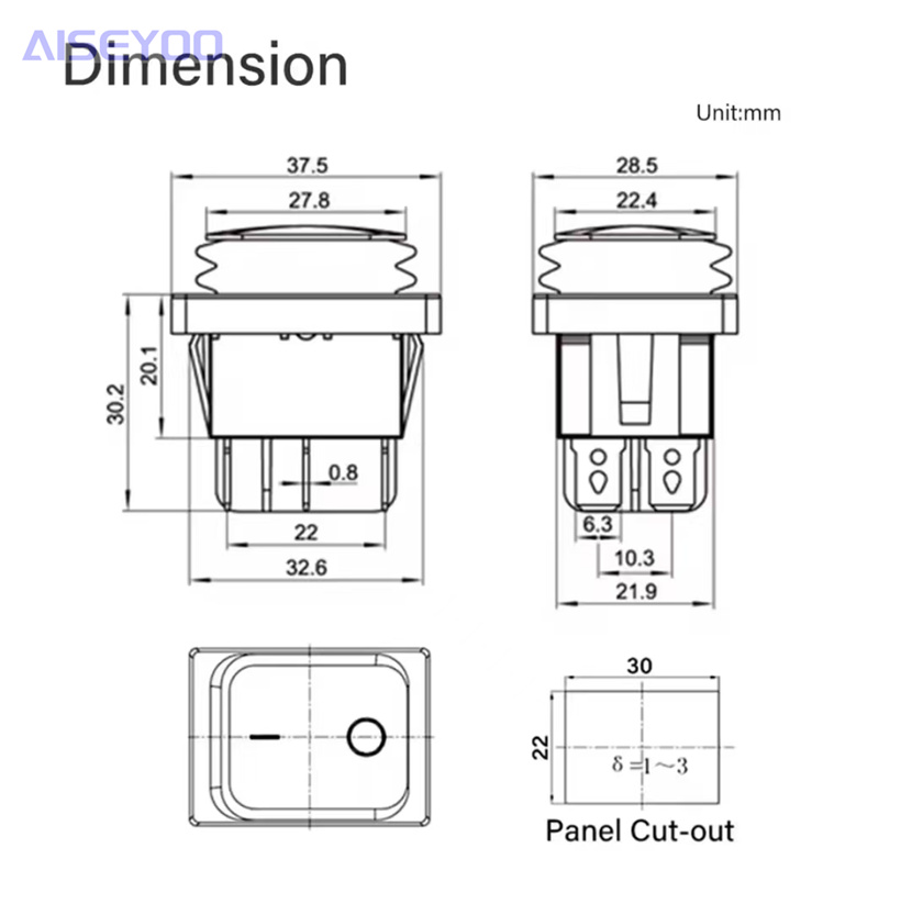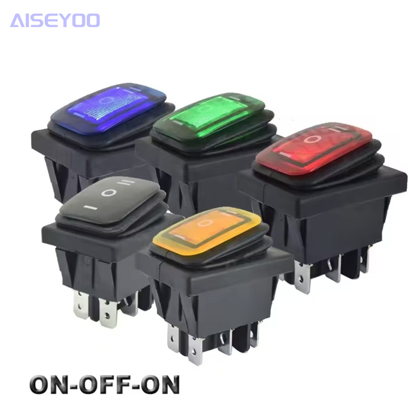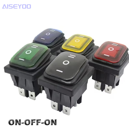 waterproof rocker switch kcd4 waterproof switch with light three-gear waterproof switch 6-leg 3-gear arrow bilateral reset 中文版