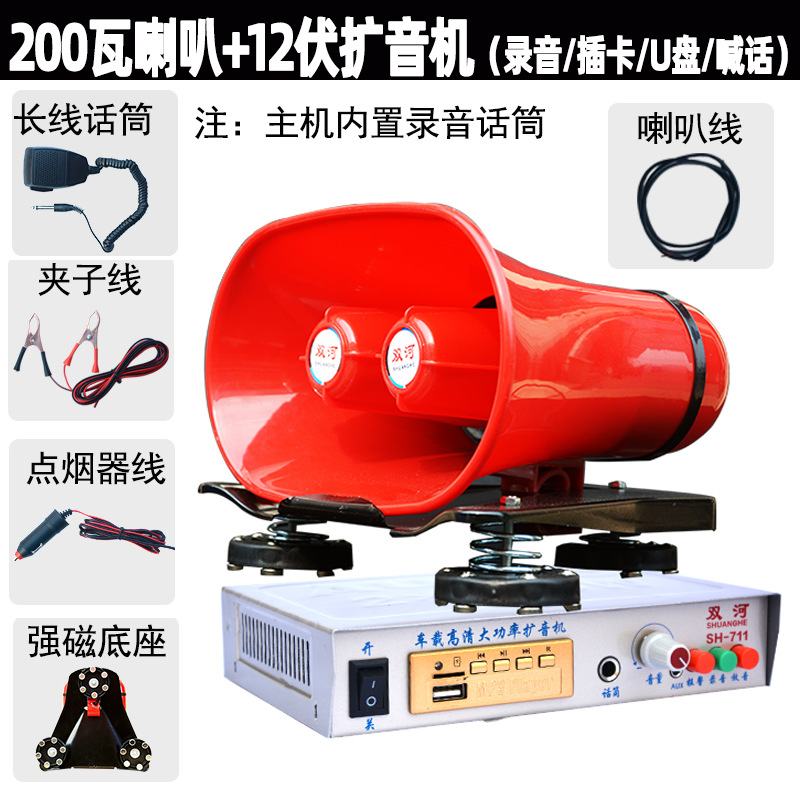 200w speaker 618+12-60v audio amplifier 711 + microphone + cigarette lighter cable + clip line