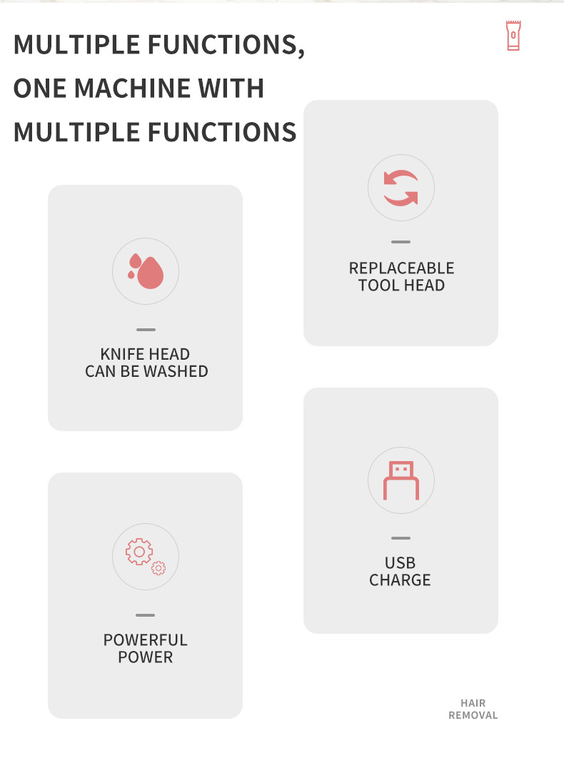 Usage: Suitable for both dry and wet use. The main unit is not waterproof, but the blade head is removable and can be washed.