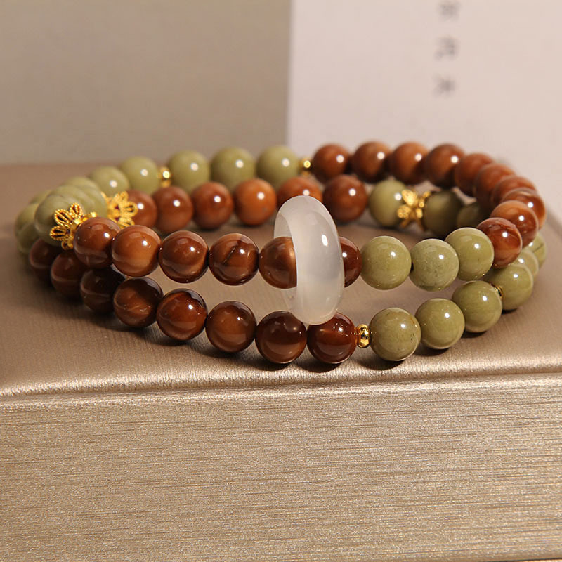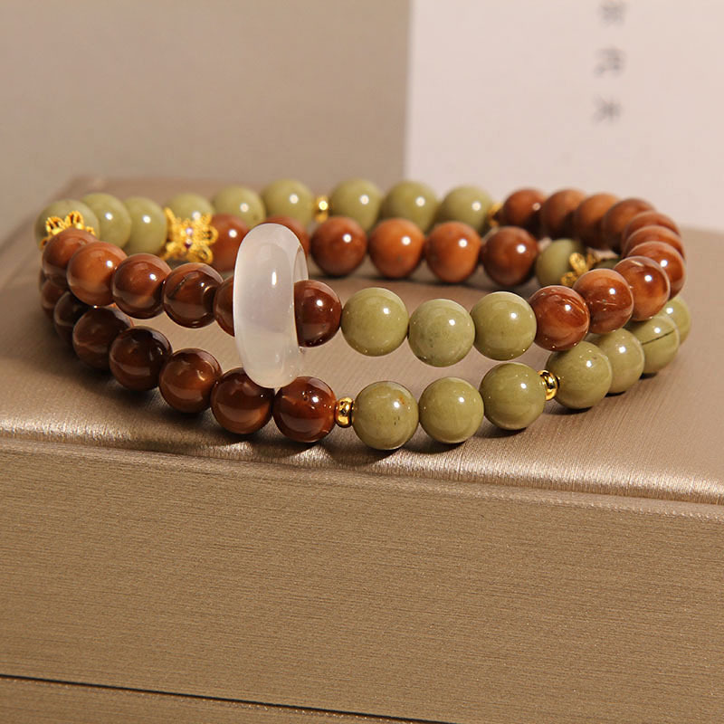 5 gold rutilated quartz begonia bracelets next to each