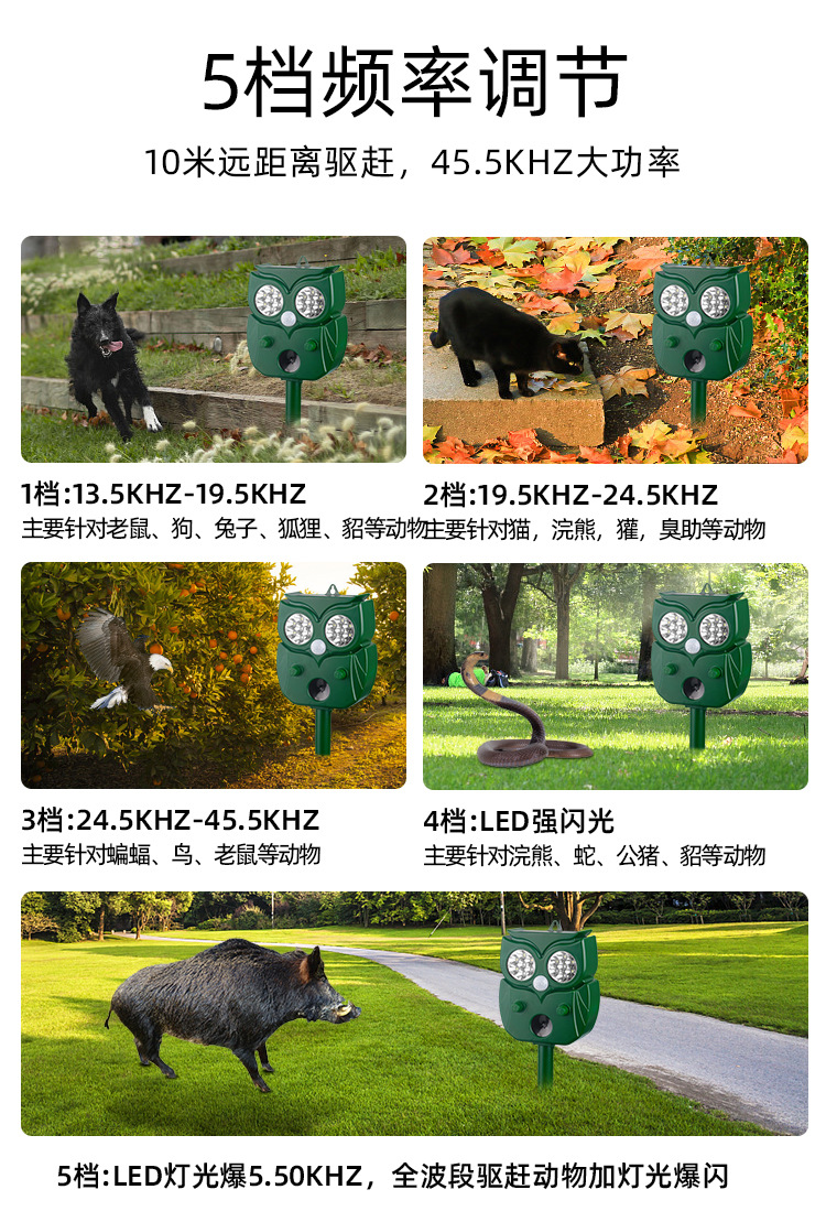 ultrasonic animal repeller snake repellent infrared induction bird repellent dog device beast driver solar pest repeller