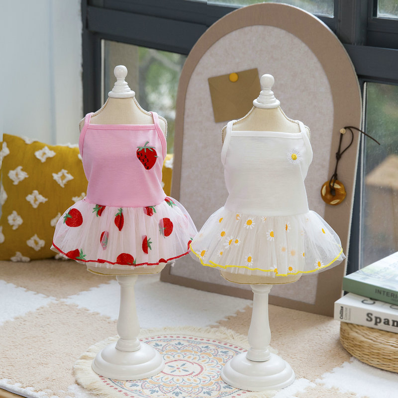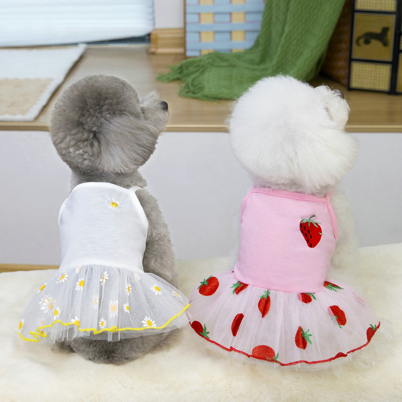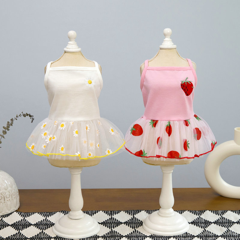 spring and summer new dog clothes clothing pet striped spaghetti straps tulle skirt dog supplies 25 colored gold gauze skirt 中文版