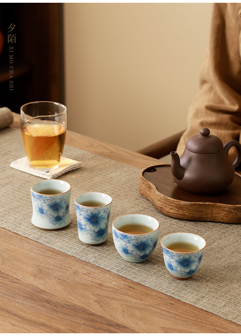 celadon glaze sunflower four cup set + gift box