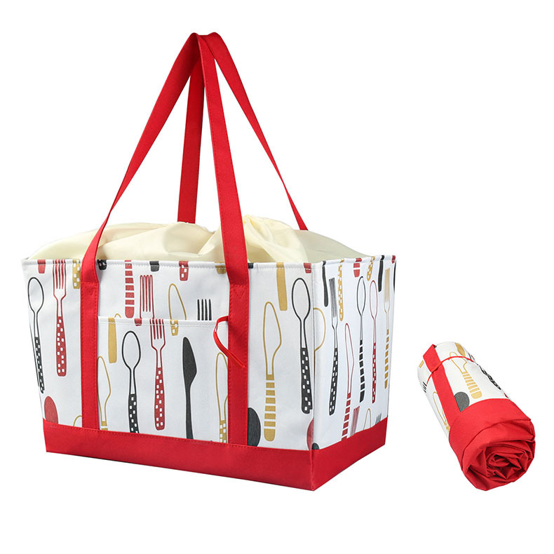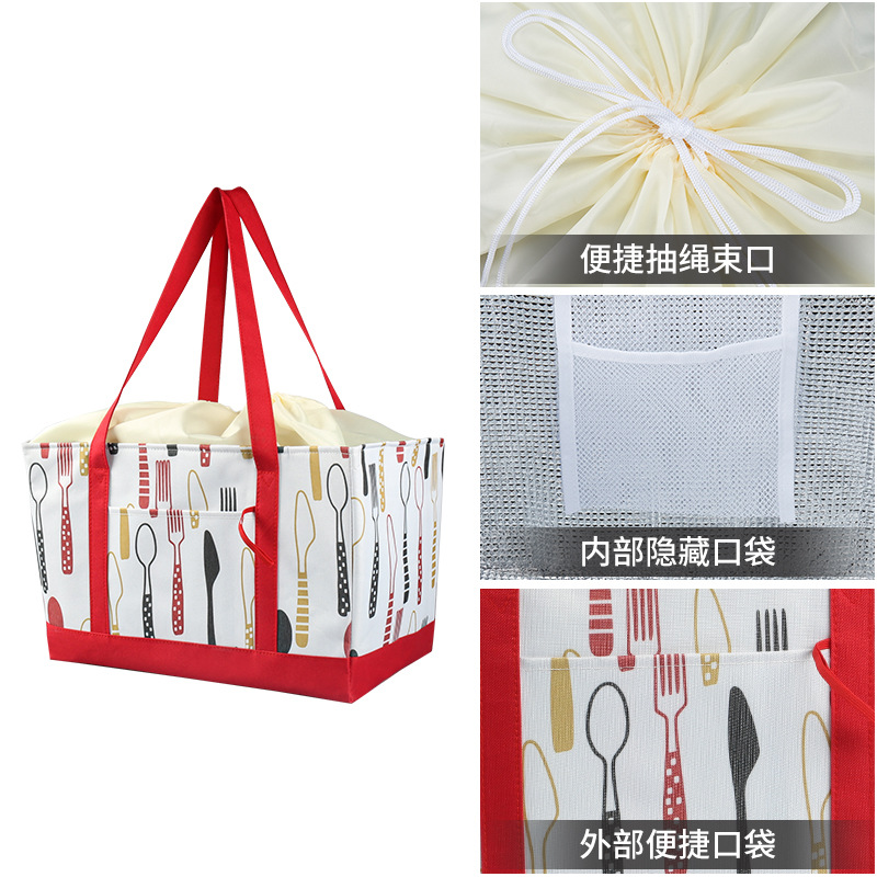 drawstring thermal bag red knife and fork