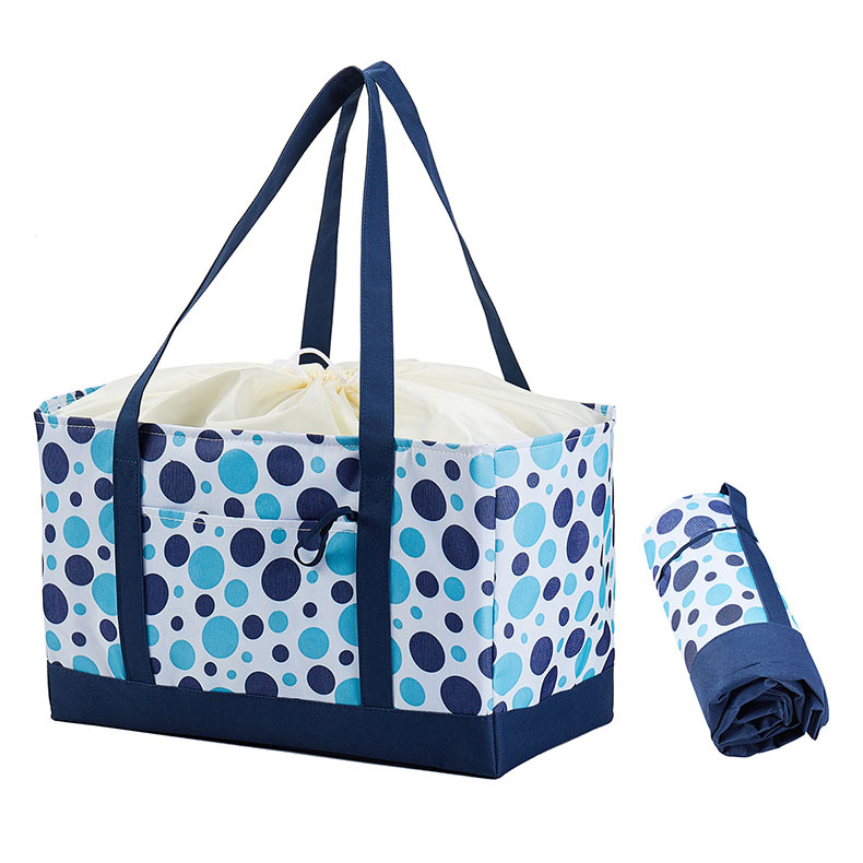 drawstring thermal bag blue with dots