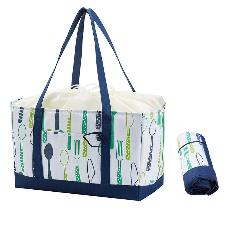 drawstring thermal bag green knife and fork