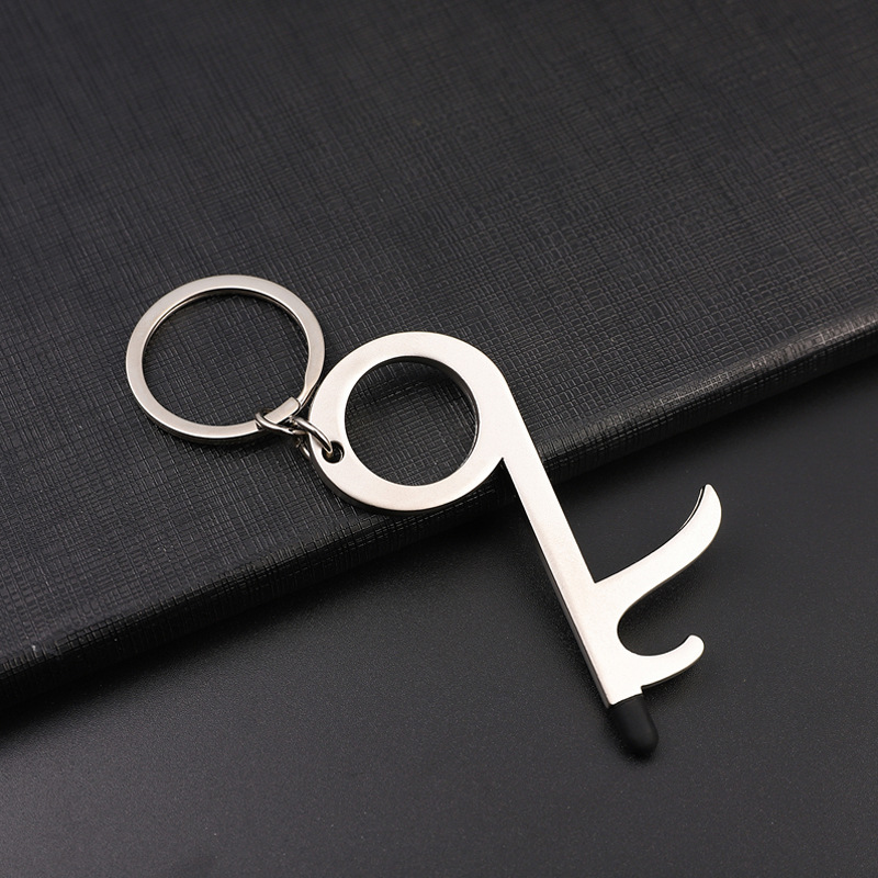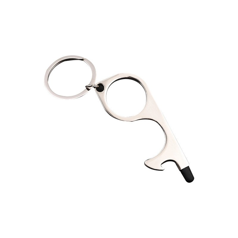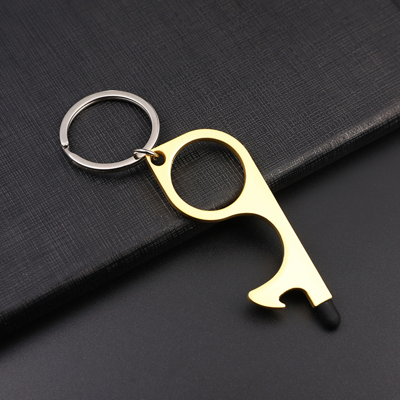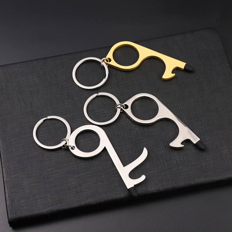 protective door opening tool in stock metal key pendant non-contact door opener multi-functional keychain customized processing
