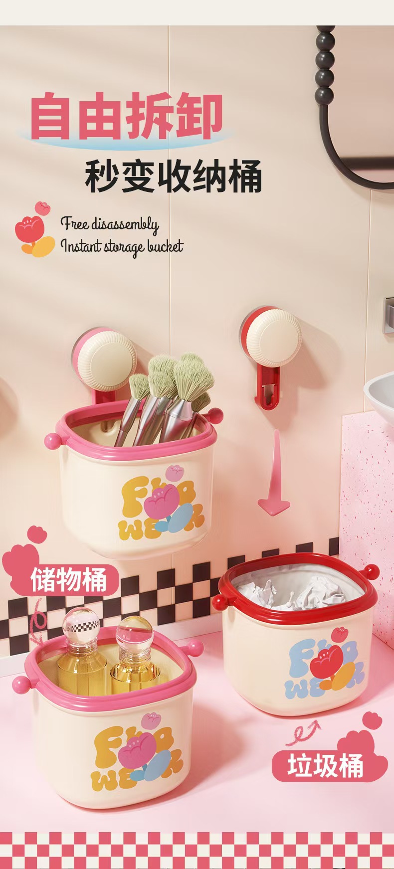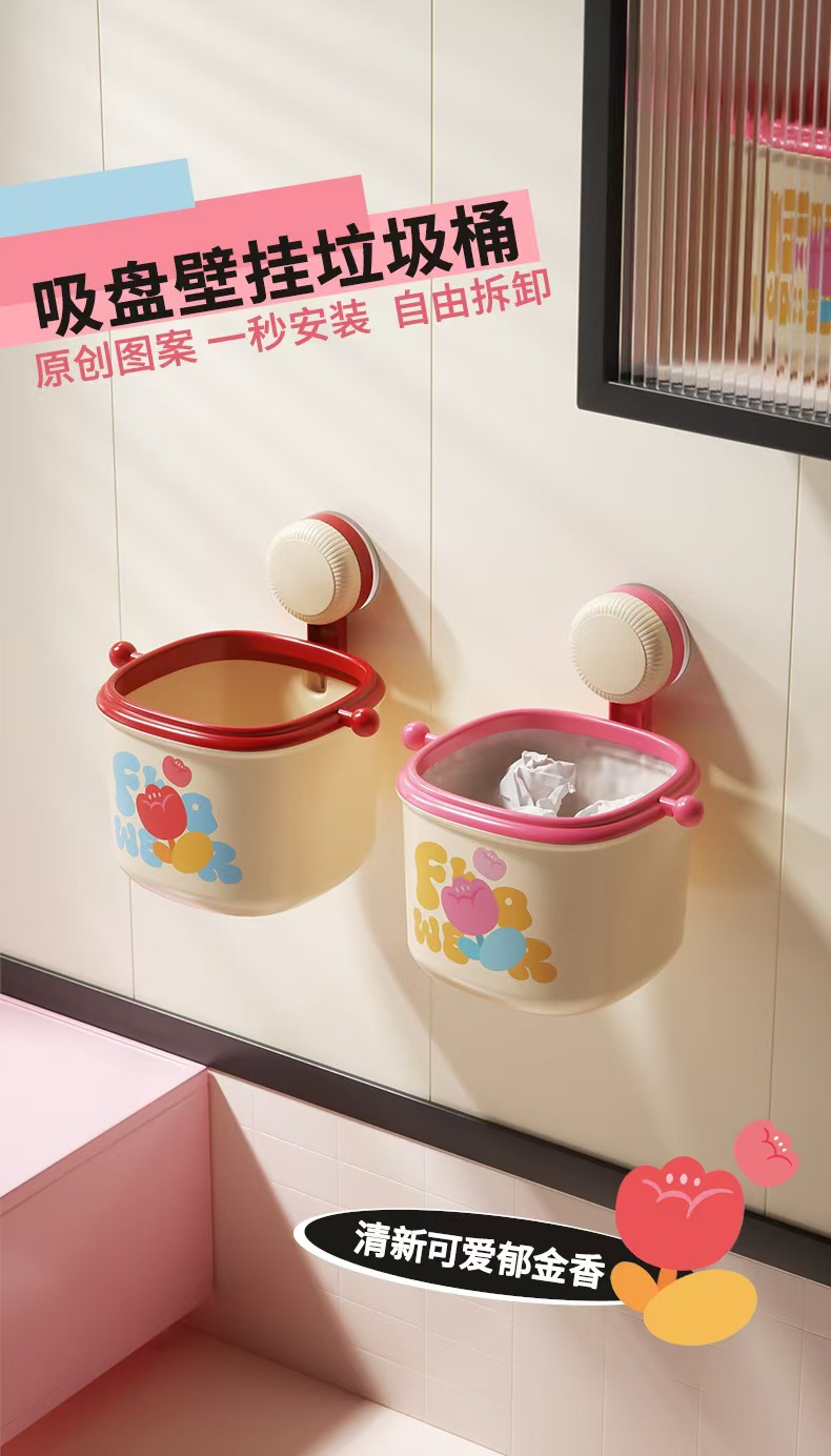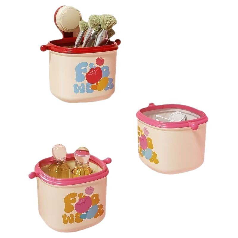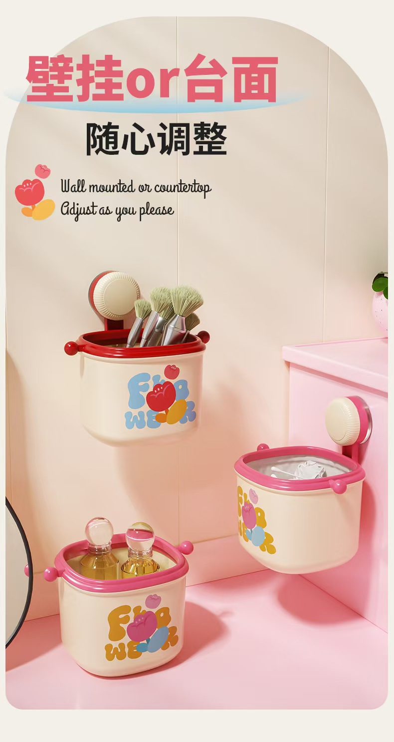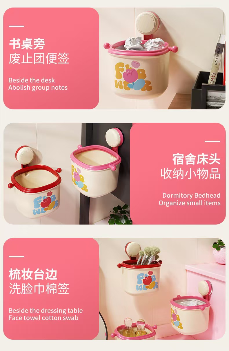 colorful suction cup washstand storage box wall-mounted trash can storage face cloth storage box good-looking desktop basket 中文版