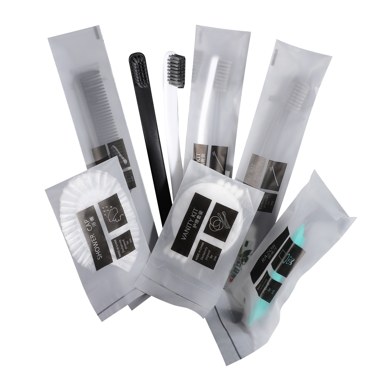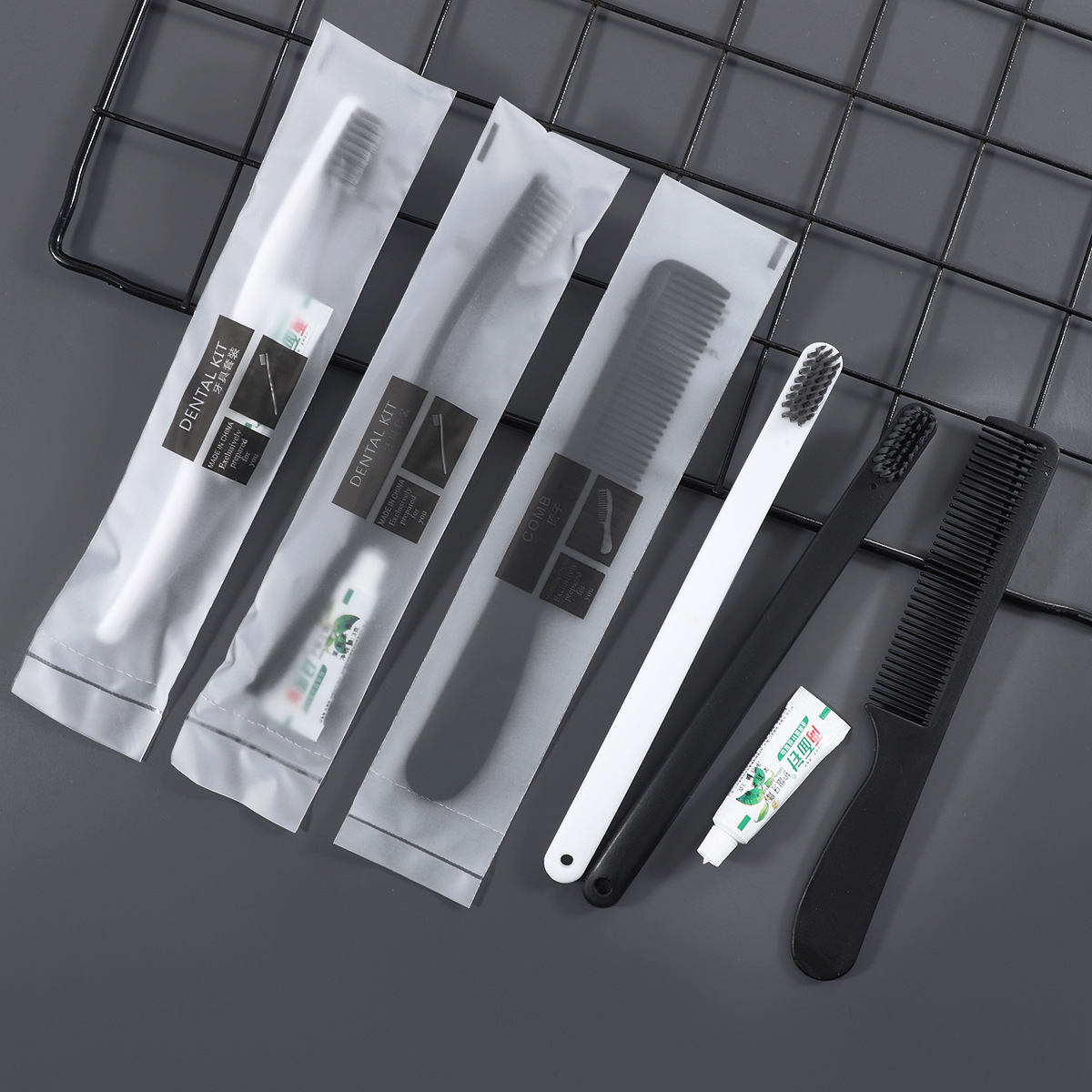 four:Disposable items (toothbrush, toothpaste, comb, soap, shampoo, body wash, razor, care kit, slippers, tissue paper, etc.)