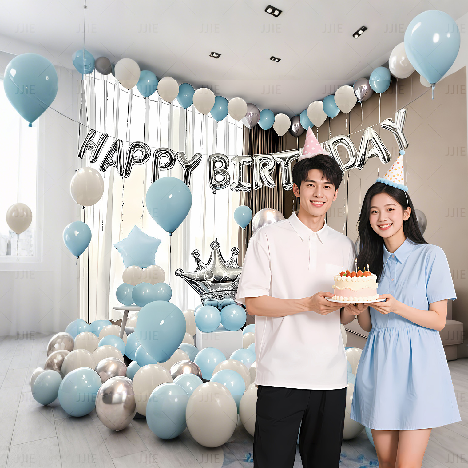 jt-0129 silver gray birthday suit + [paper card packaging] + [dispensing and ribbon]]