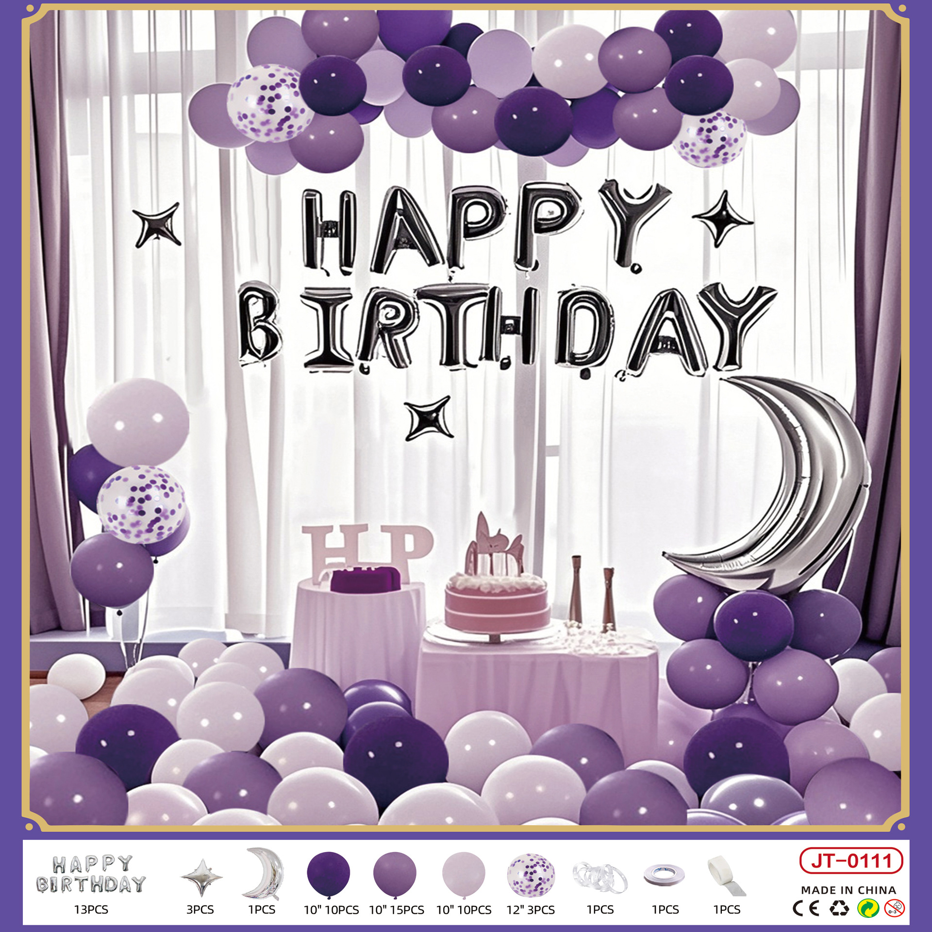 jt-sr01-7 purple silver crown set + [paper card packaging] + [dispensing and ribbon]]
