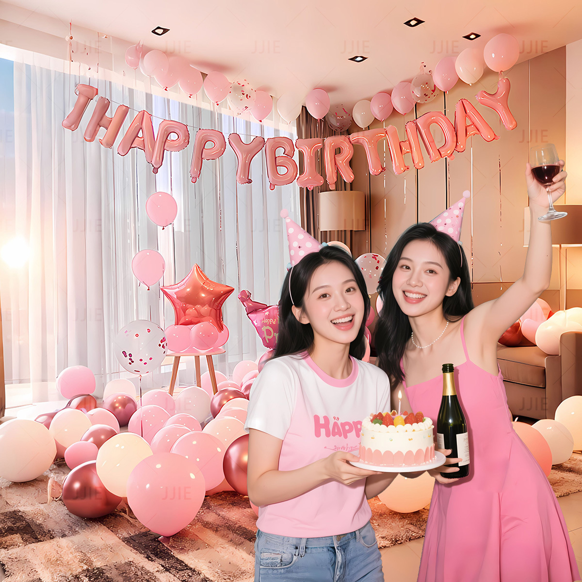 jt-sr01-5 pink black silver crown set + [paper card packaging] + [dispensing and ribbon]]