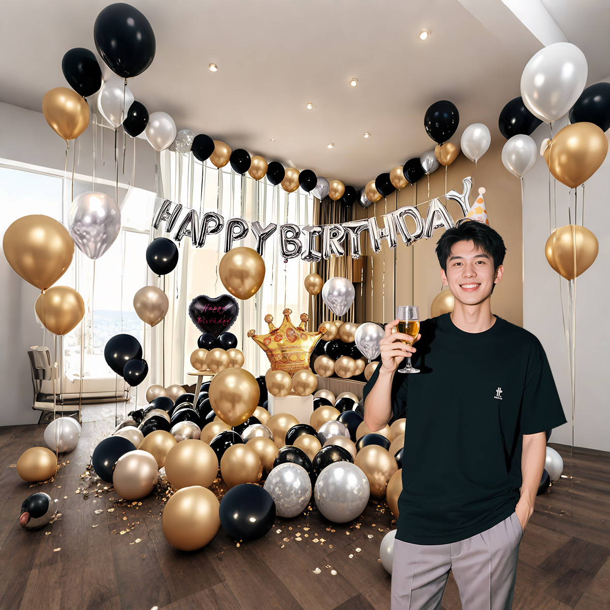 jt-0117 black gold birthday suit + [paper card packaging] + [dispensing and ribbon]]