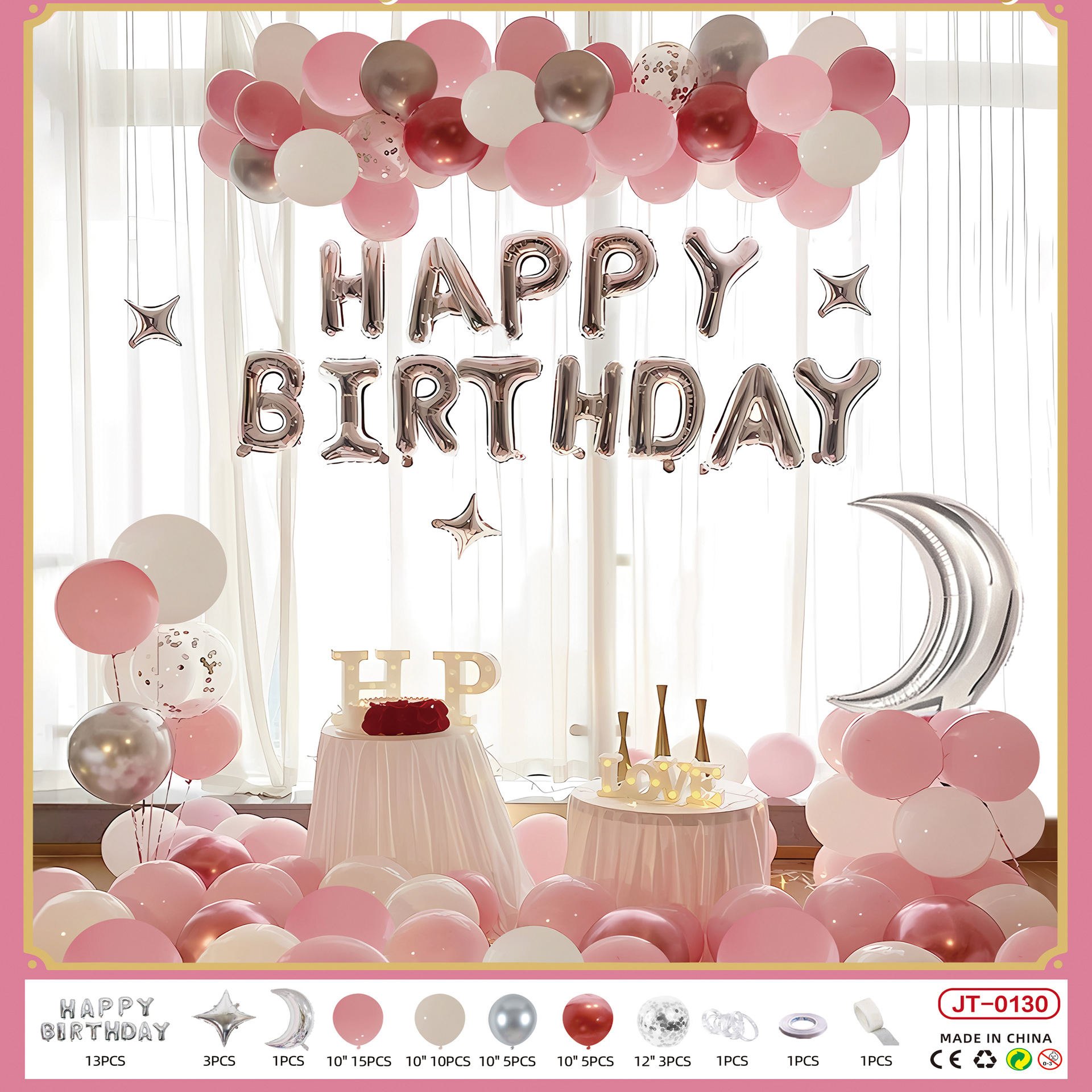jt-sr01-9 pink silver crown set + [paper card packaging] + [dispensing and ribbon]]