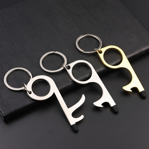 protective door opening tool in stock metal key pendant non-contact door opener multi-functional keychain customized processing