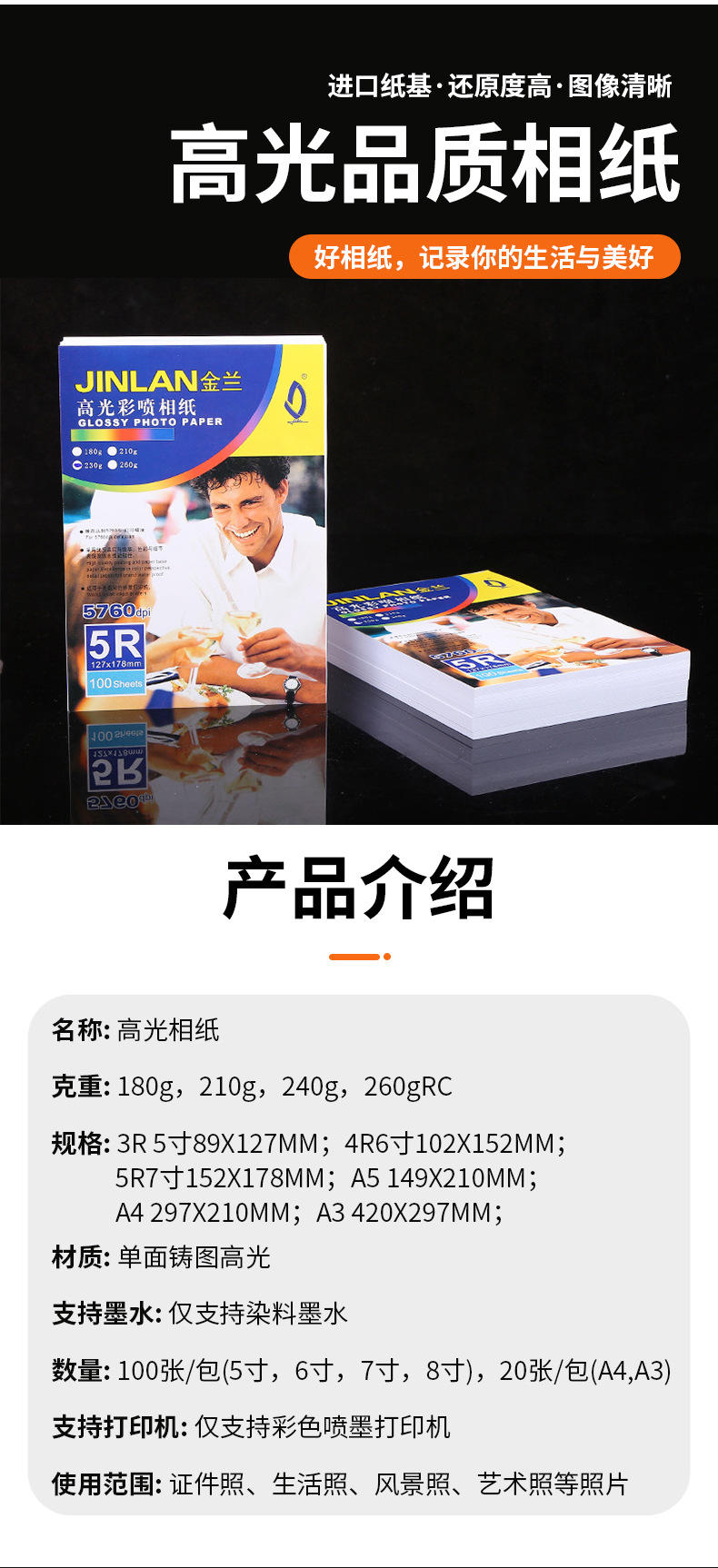 | (3r × 100)180gsm | ¥3.6 | 96930 pack available |