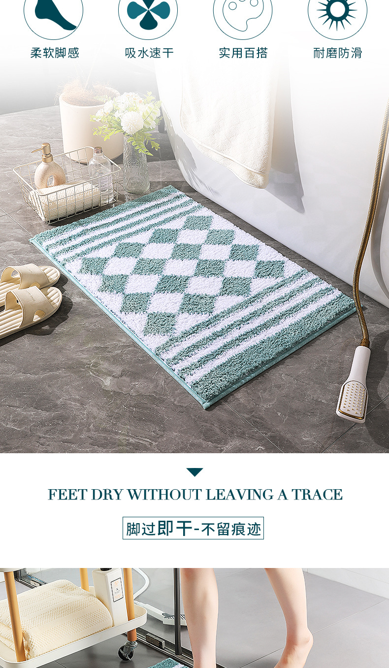 | Cross-border export checkerboard carpet bathroom door mat anti-skid mat toilet bathroom bathroom floor mat entrance door mat bedroom foot mat |