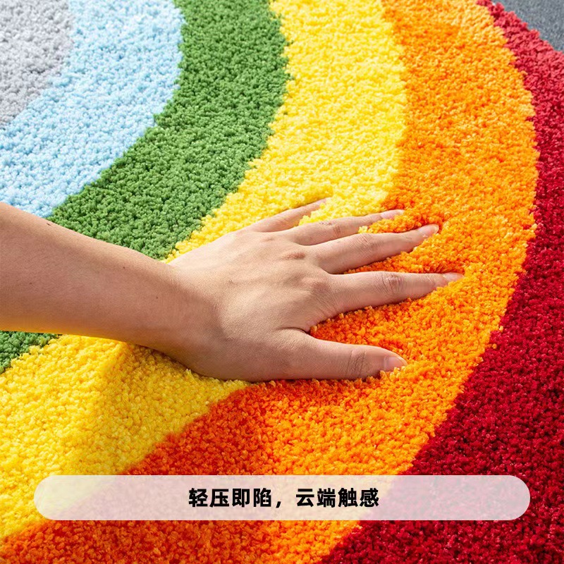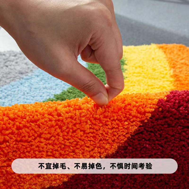 | Cross-border export braided rug, living room carpet, colored carpet, bedside mat, stain-resistant and water-absorbent braided rug, colored stripe floor mat |