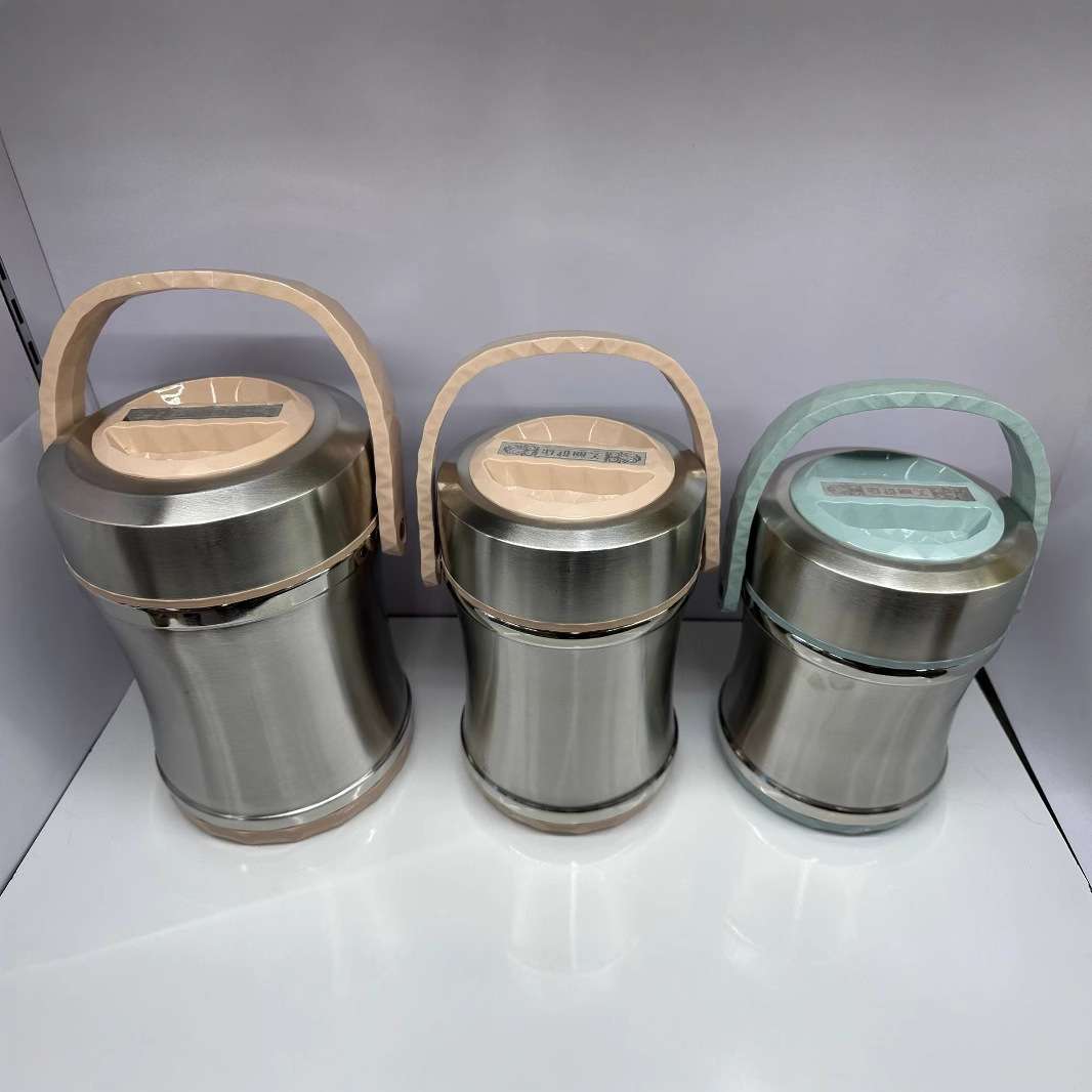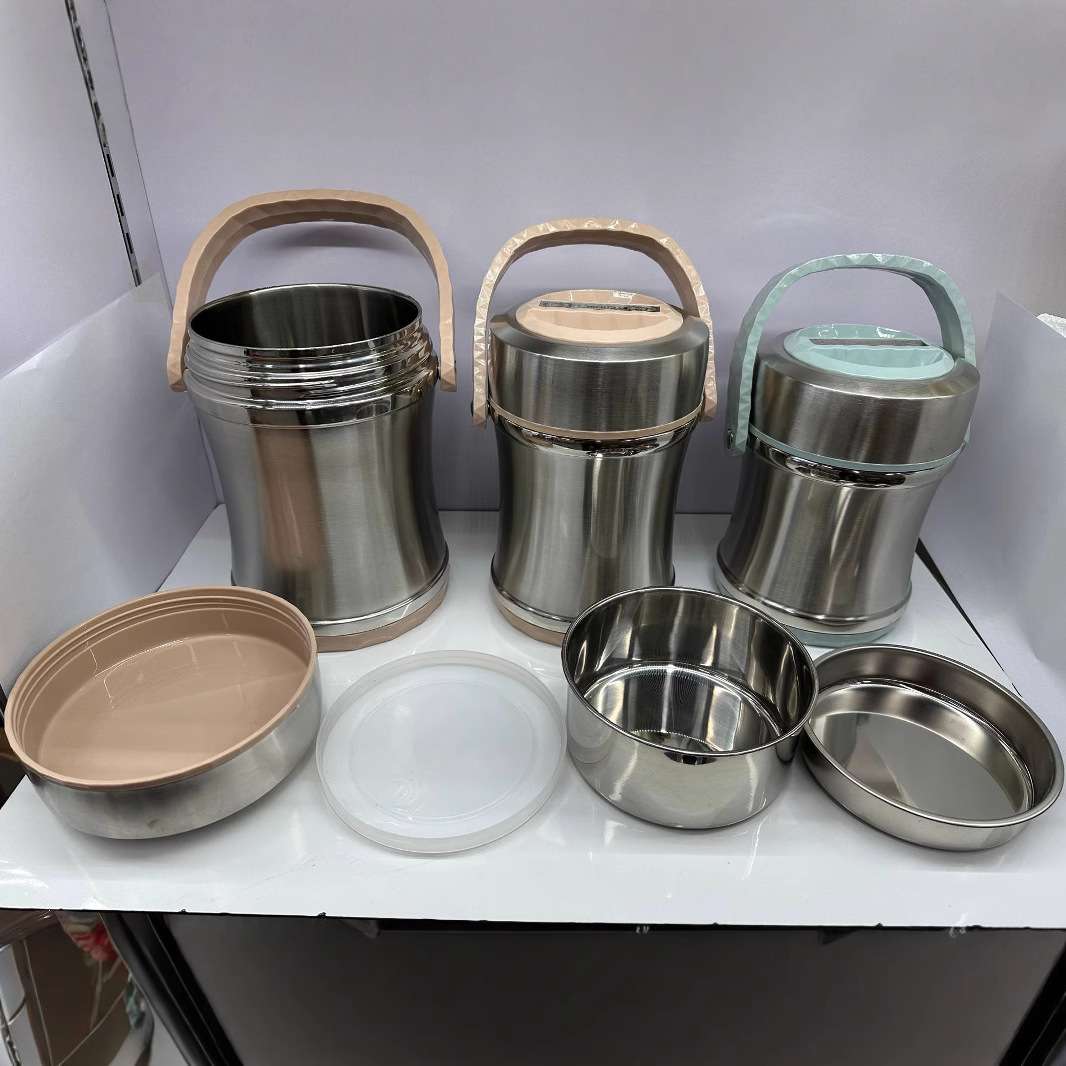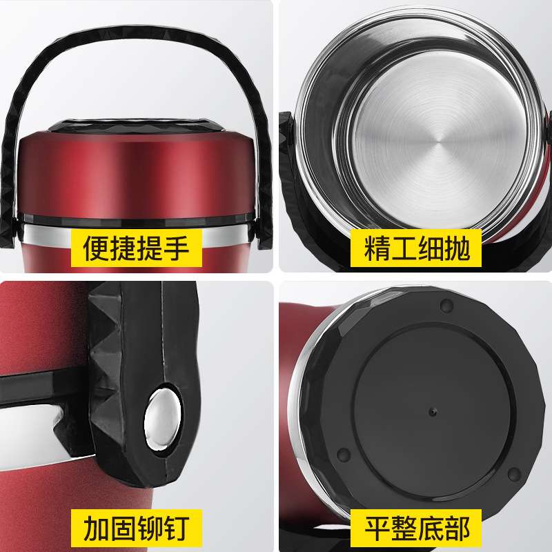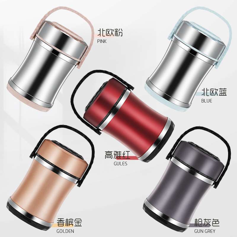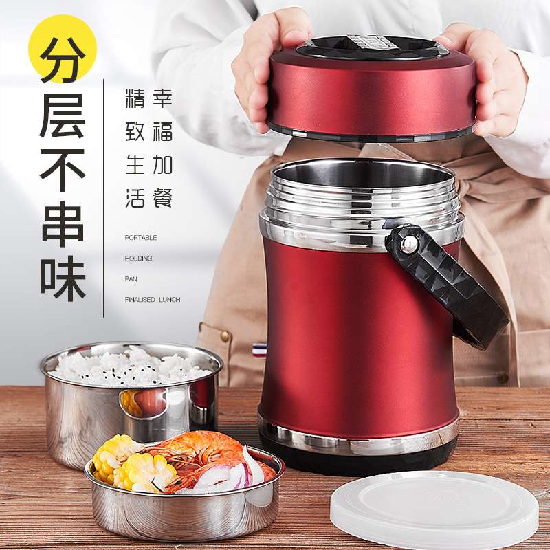stainless steel thickening thermal insulation portable pan small waist portable pan drum-shaped portable pan insulated lunch box three-layer bowl cover insulated portable pan