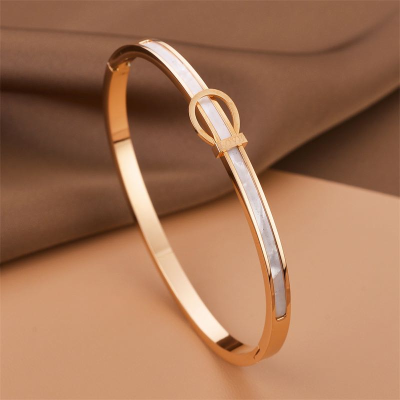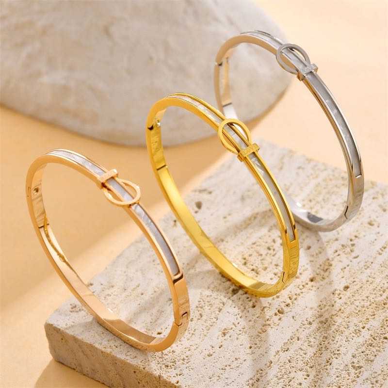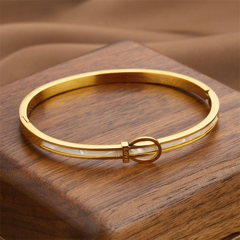 cross-border titanium steel electroplated 18k gold shell mother shell belt buckle bracelet minimalist design fashion style bracelet 中文版