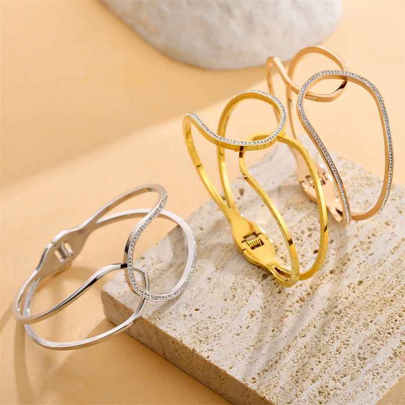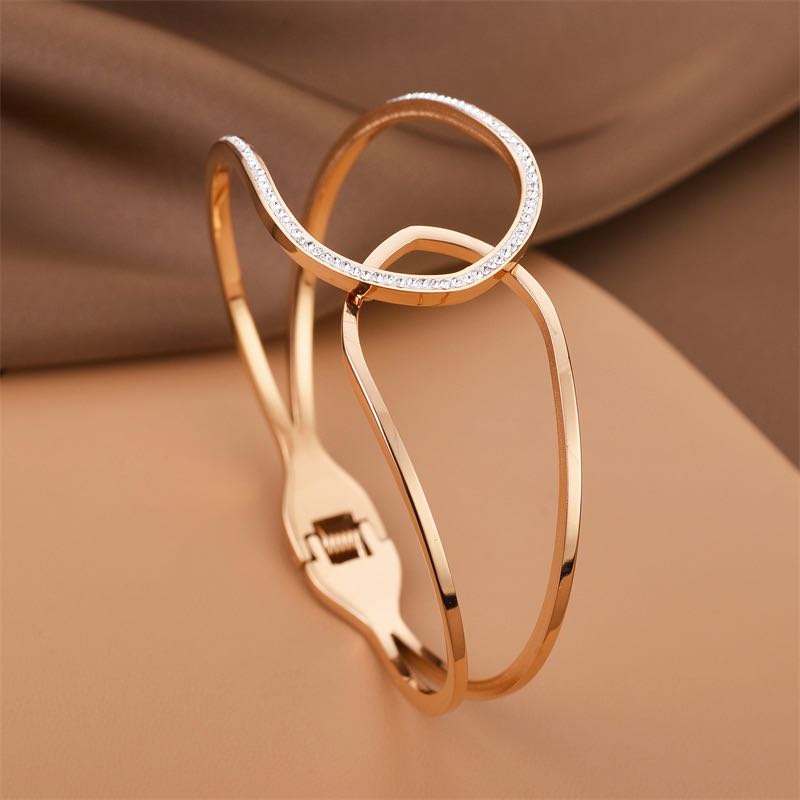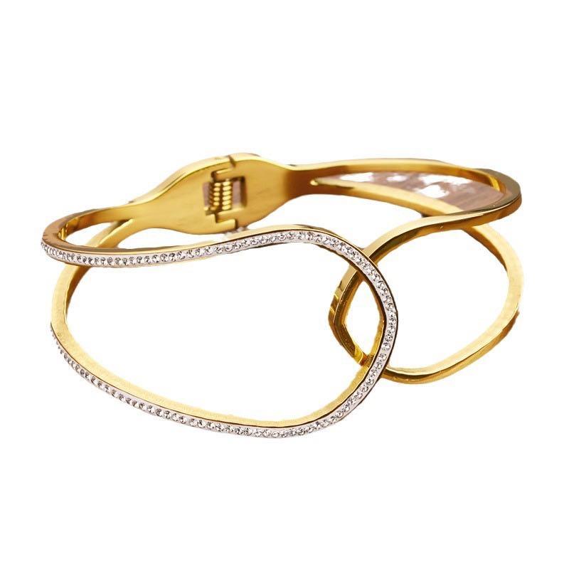cross-border european and american simple and light luxury style hollow clay diamond shape bracelet 18k gold ins style non-fading titanium steel women's bracelet 中文版