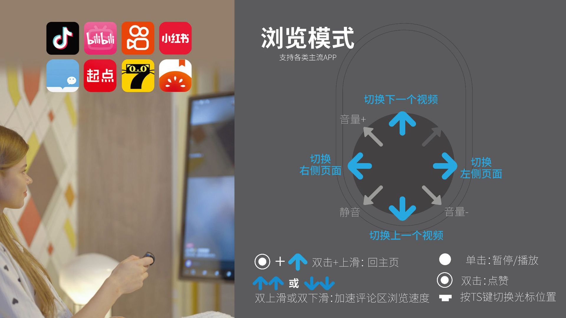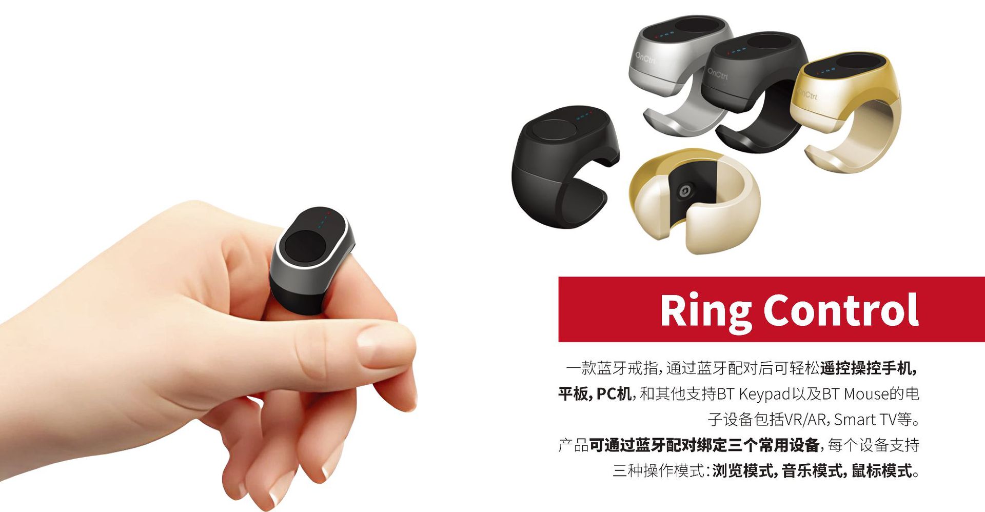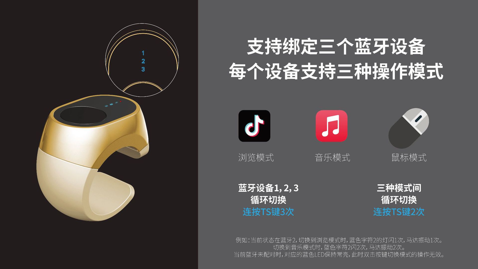 multifunctional bluetooth mouse ring brush video novel page turning switch song adjustment volume cursor sliding mode 中文版