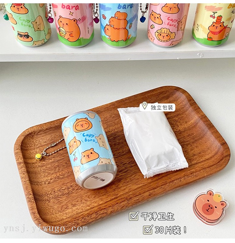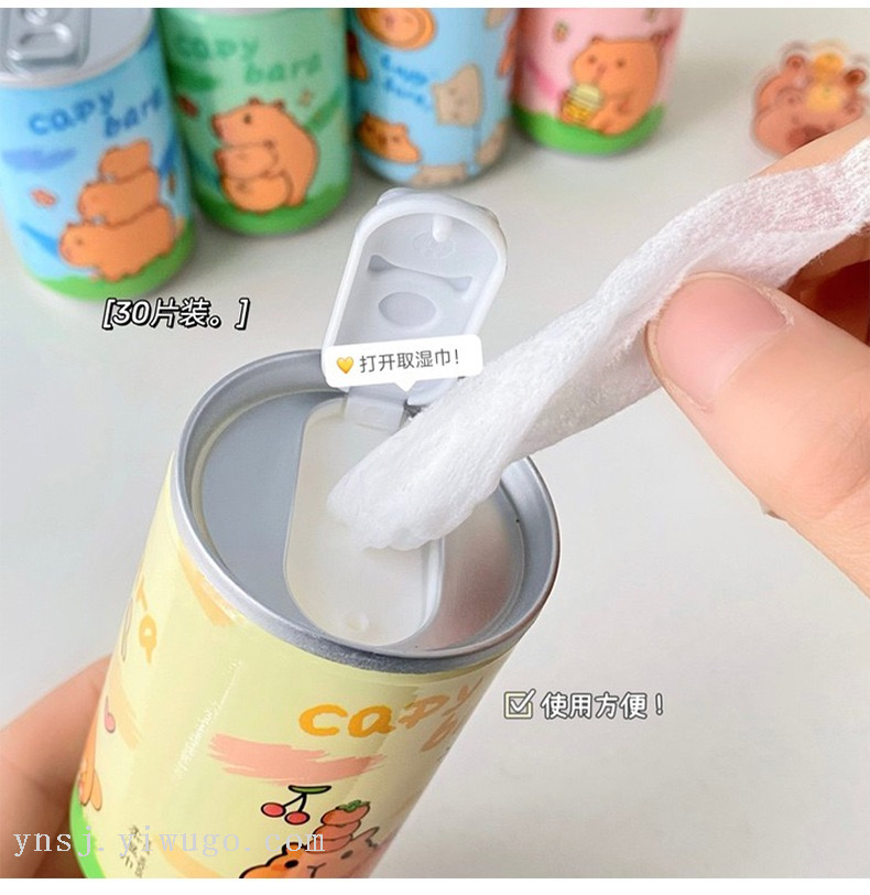 factory direct sales creative 30-piece barrel mini cleaning wipes cute portable bag hanging sanitary wipes 中文版