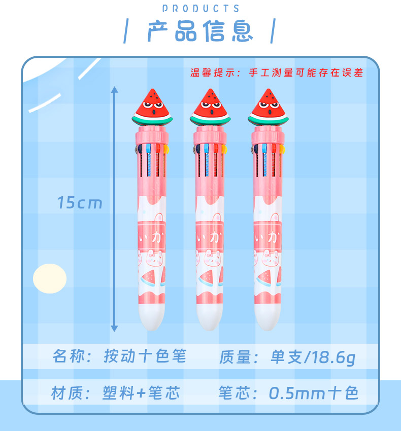capi balala cloth fruit ten-color ballpoint pen cute cartoon 中文版