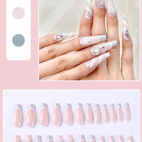 cross-border snowflake french nude nail pure want to wear nail wholesale stick-on crystals removable nail tips