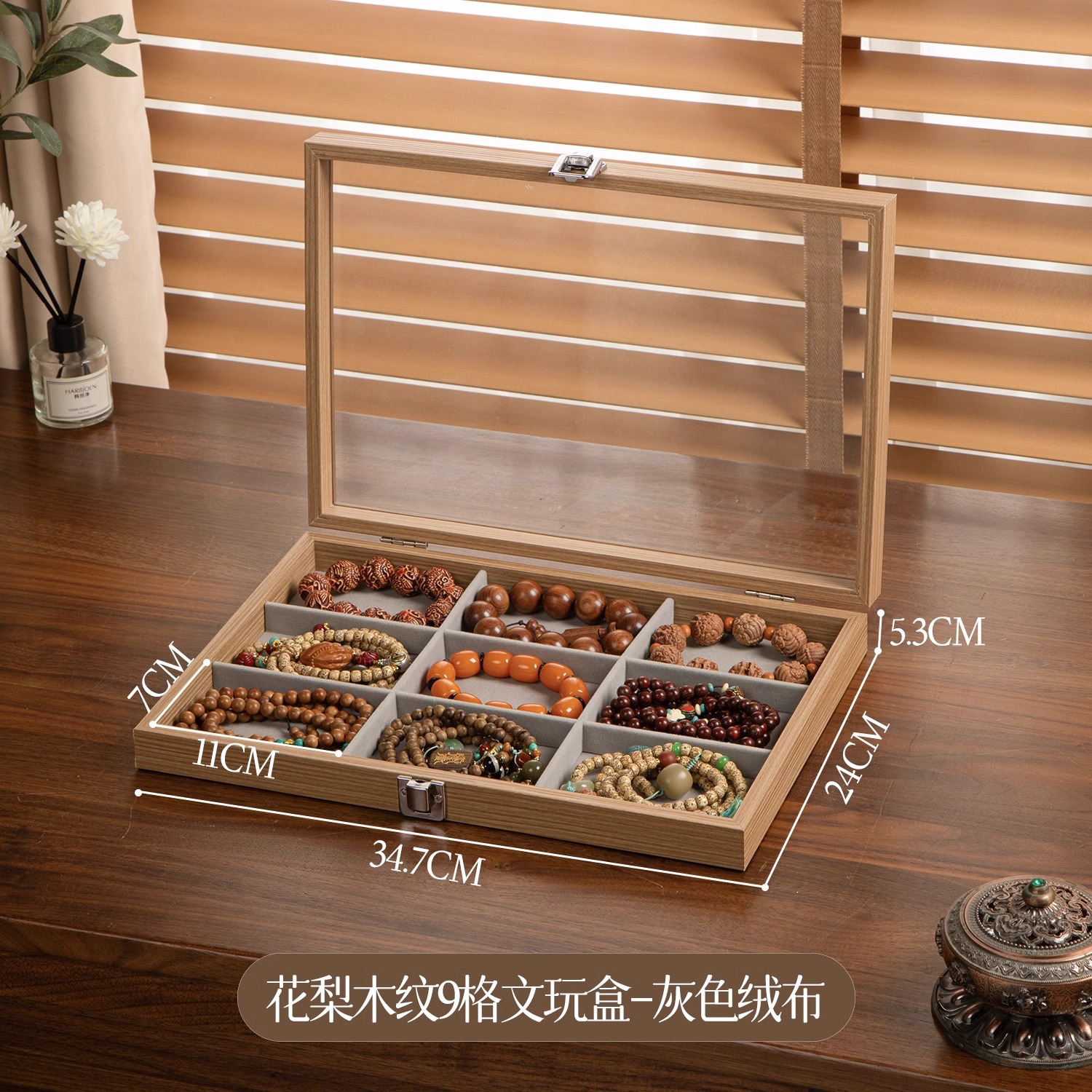 pear flower and wood crafts storage box-9 grid
