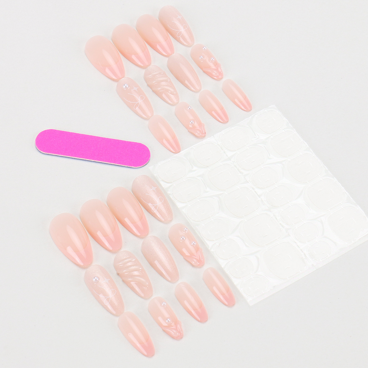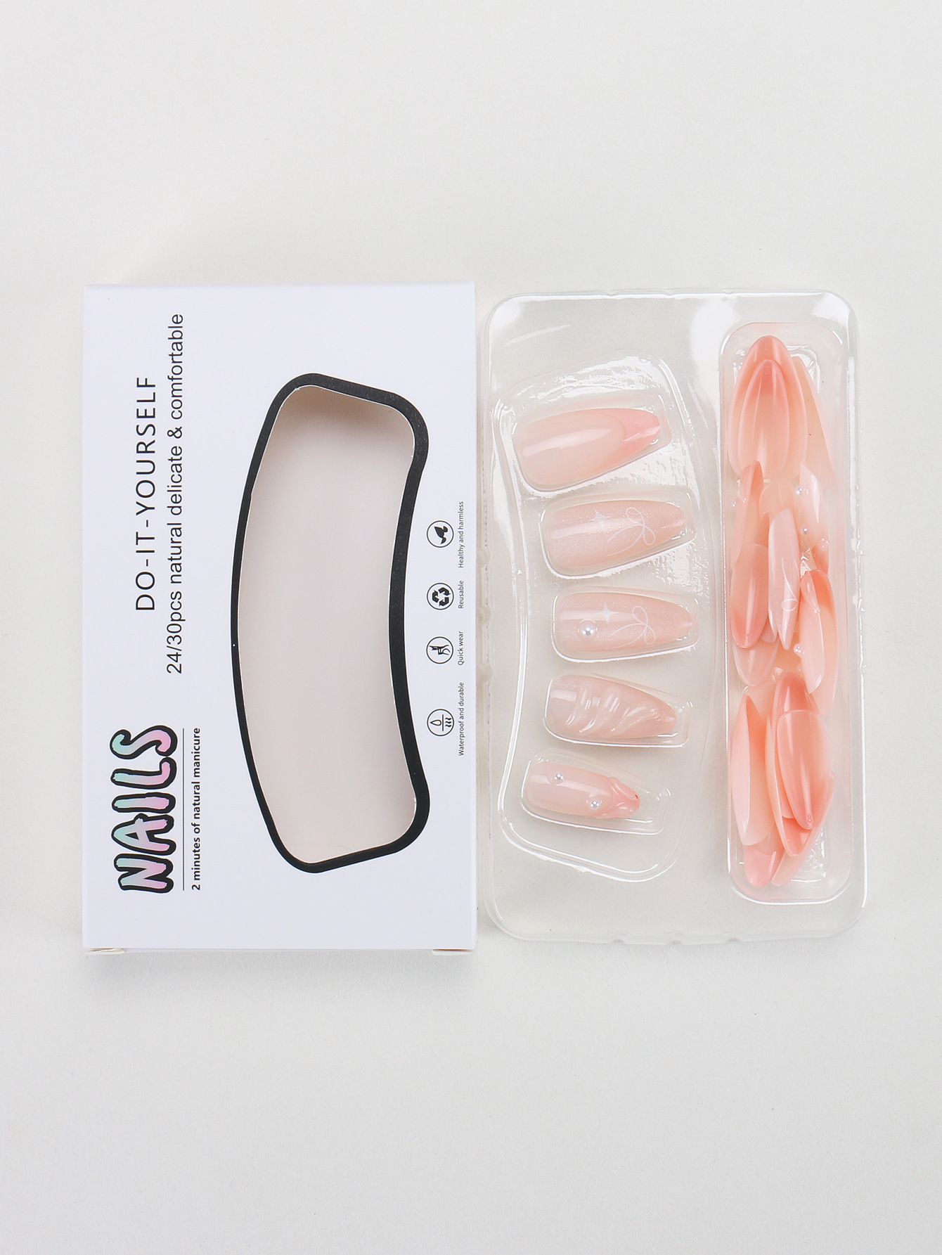 Main Specifications/Special Features:You will receive 24 fake nails in 12 sizes. Included is 1 mini nail file, 1 small wooden stick, and 1 piece of adhesive label glue. You can choose the fake nails that fit your finger size and DIY the nail shape you want with confidence.