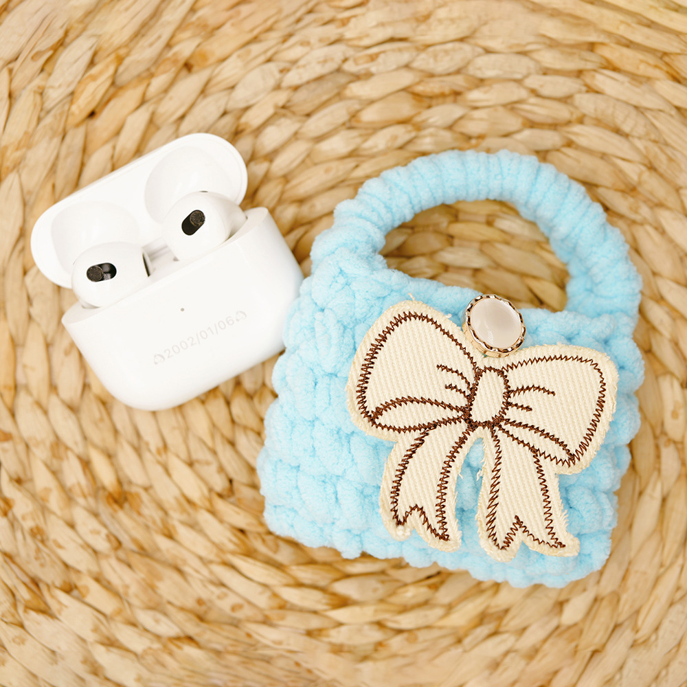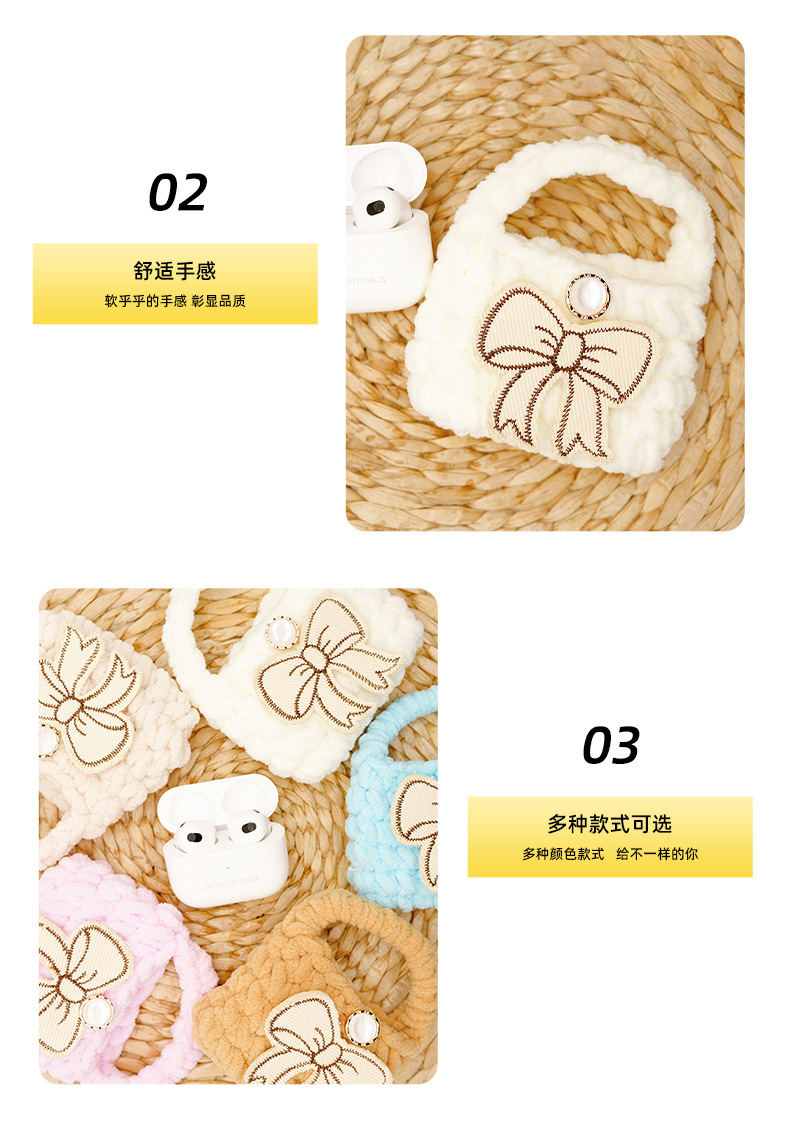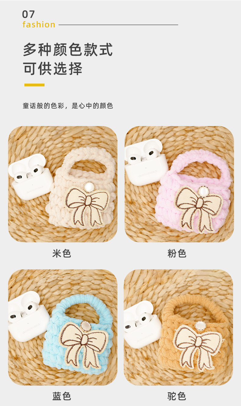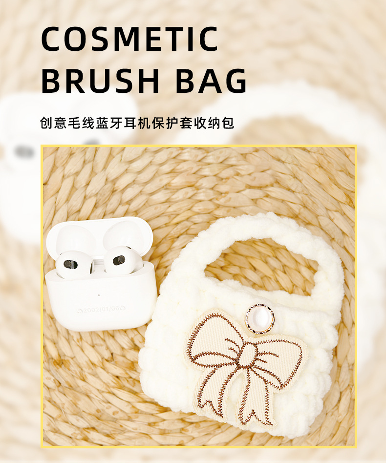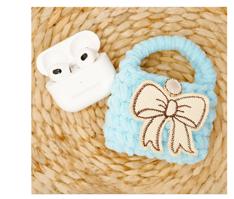 autumn and winter new multi-color bow creative wool handmade knitted bluetooth headset data cable storage bag protective cover 中文版