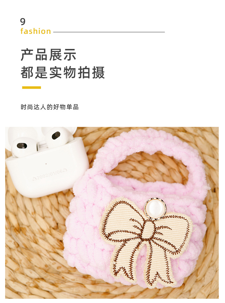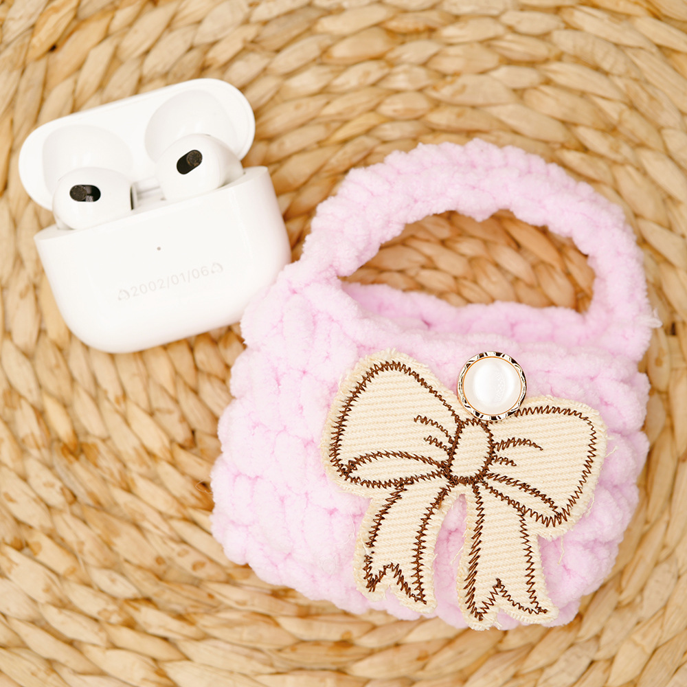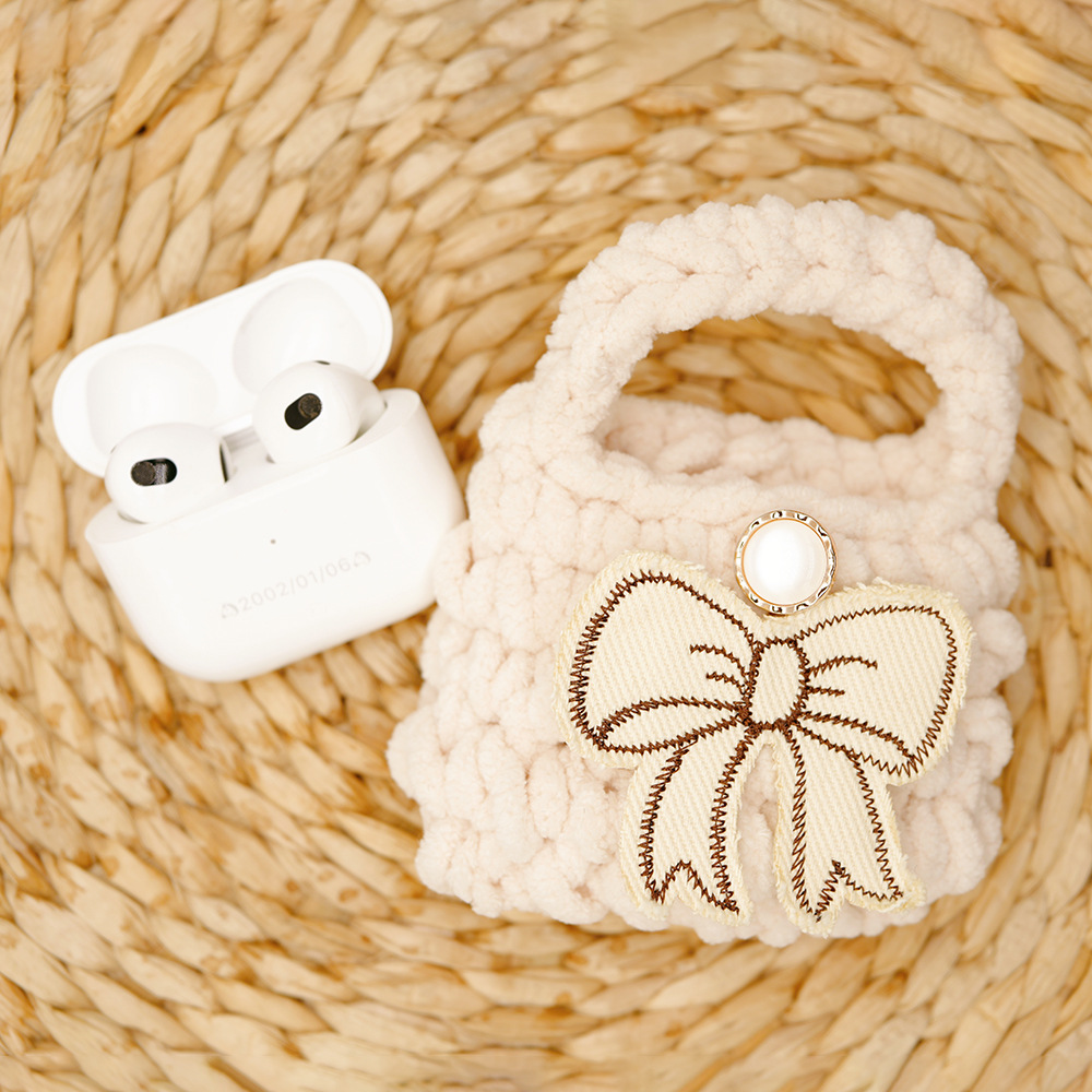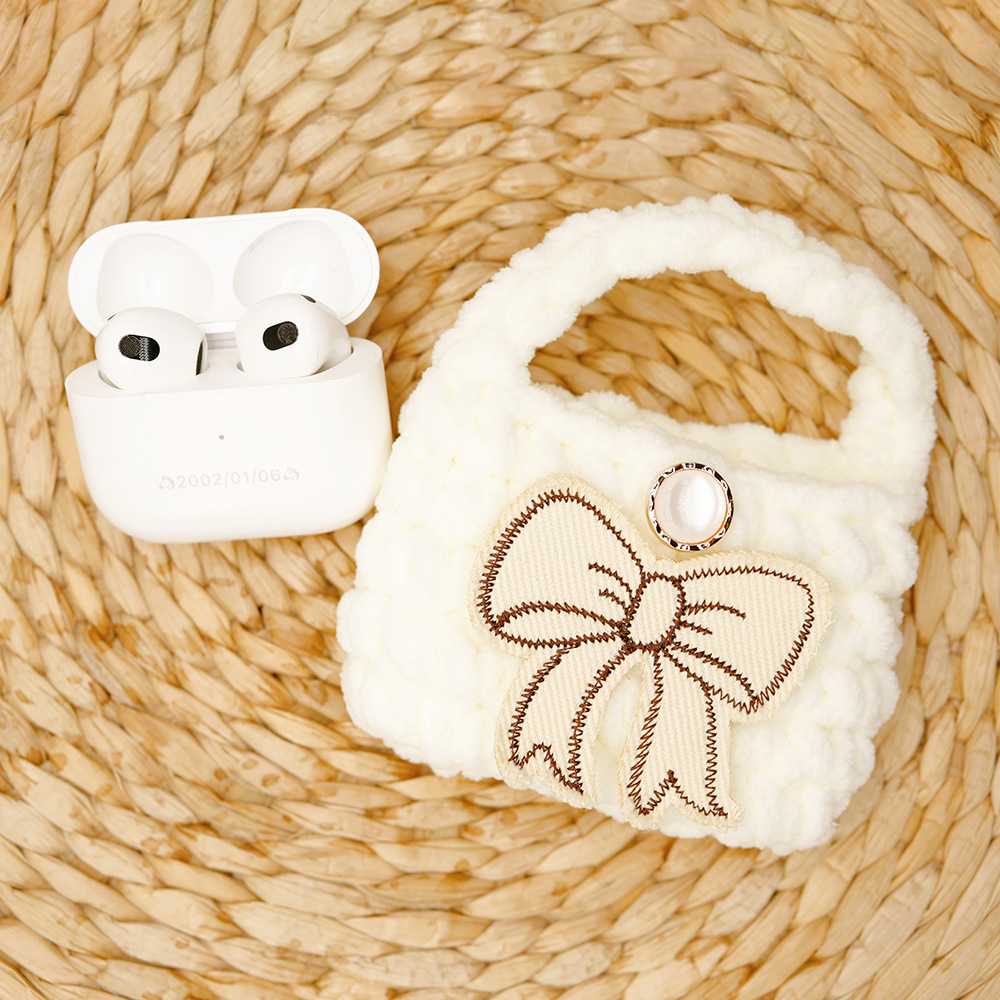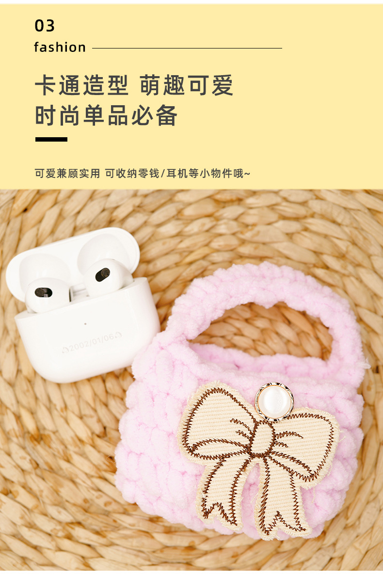 autumn and winter new multi-color bow creative wool handmade knitted bluetooth headset data cable storage bag protective cover 中文版