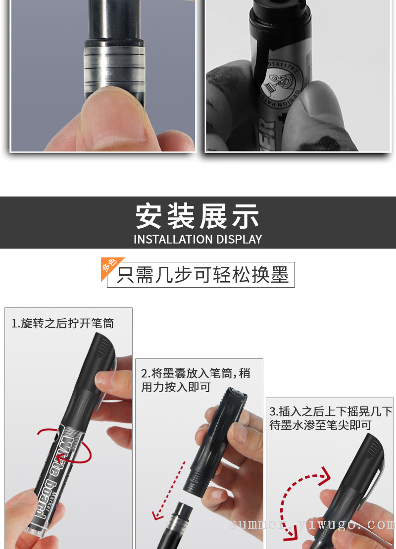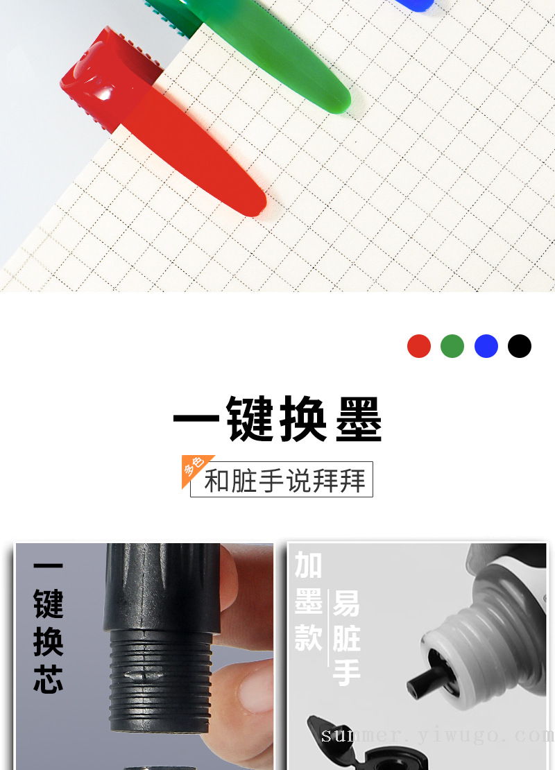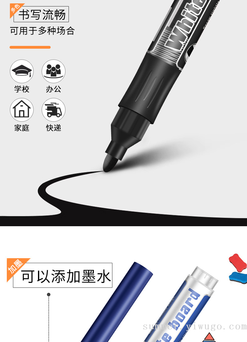 cross-border thick pen whiteboard marker ink-adding children teachers use erasable blackboard pen environmental protection certification water-based whiteboard marker 中文版