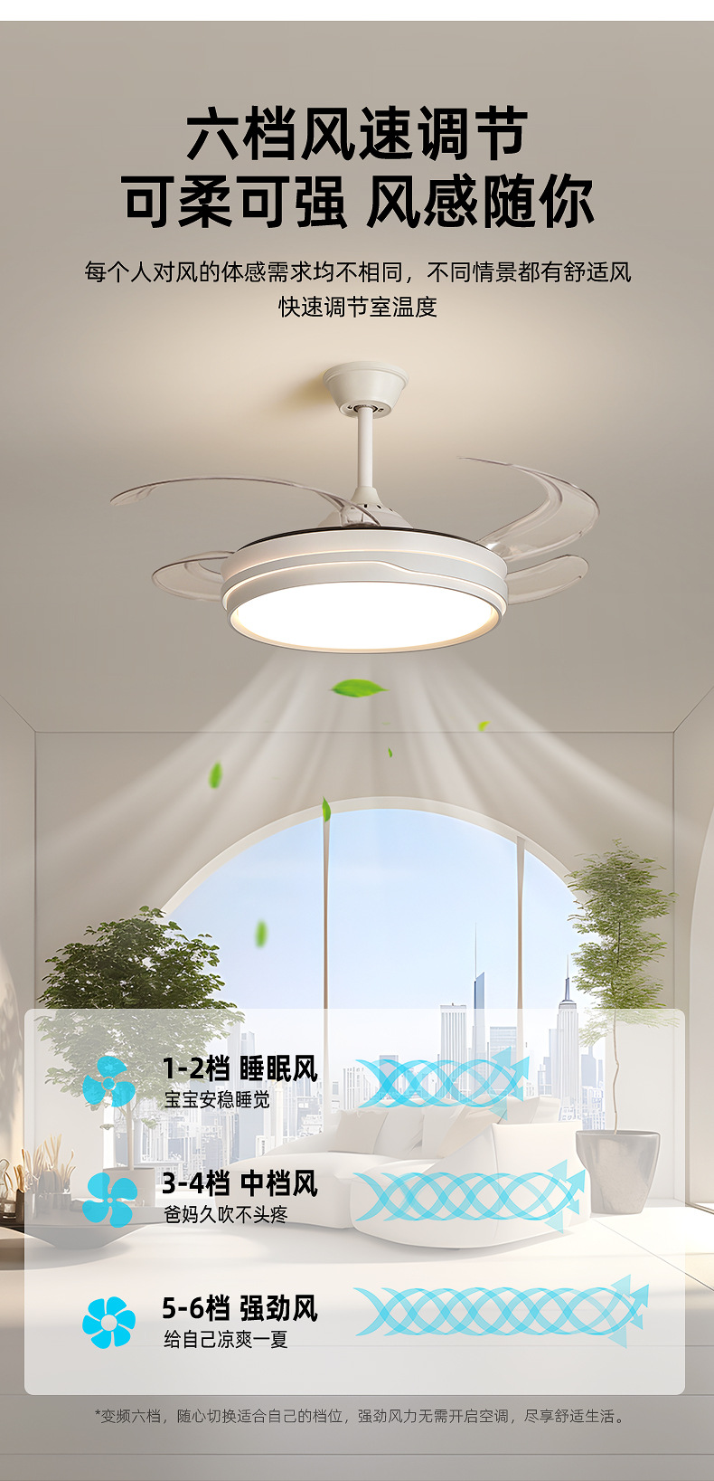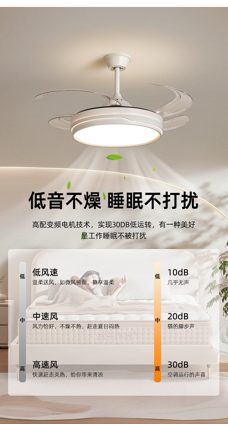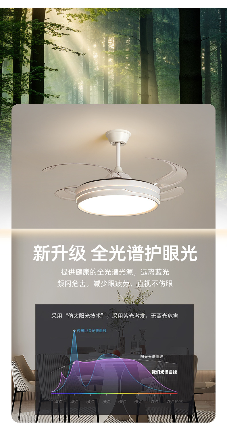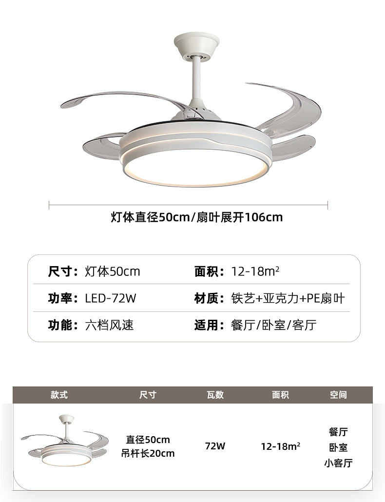 full spectrum chandelier fan lamp 50cm-offline voice control