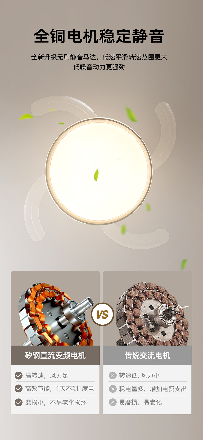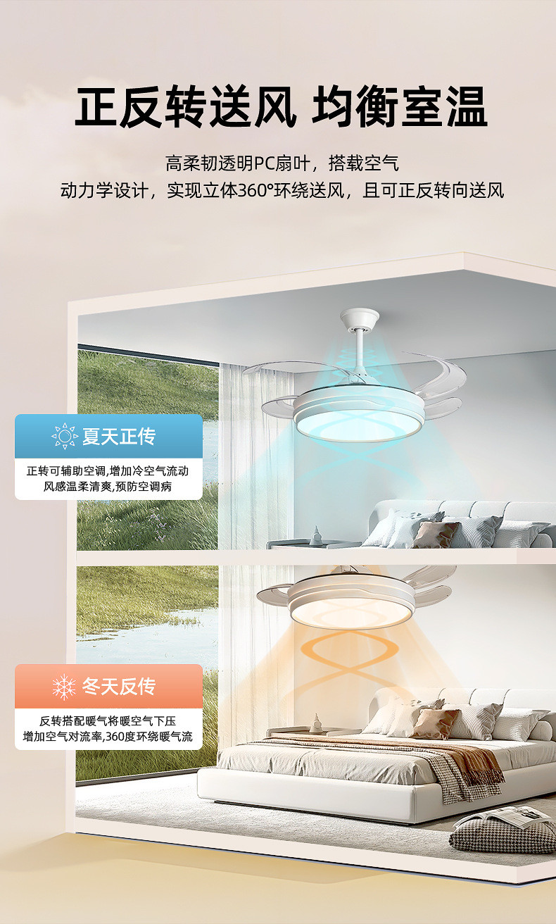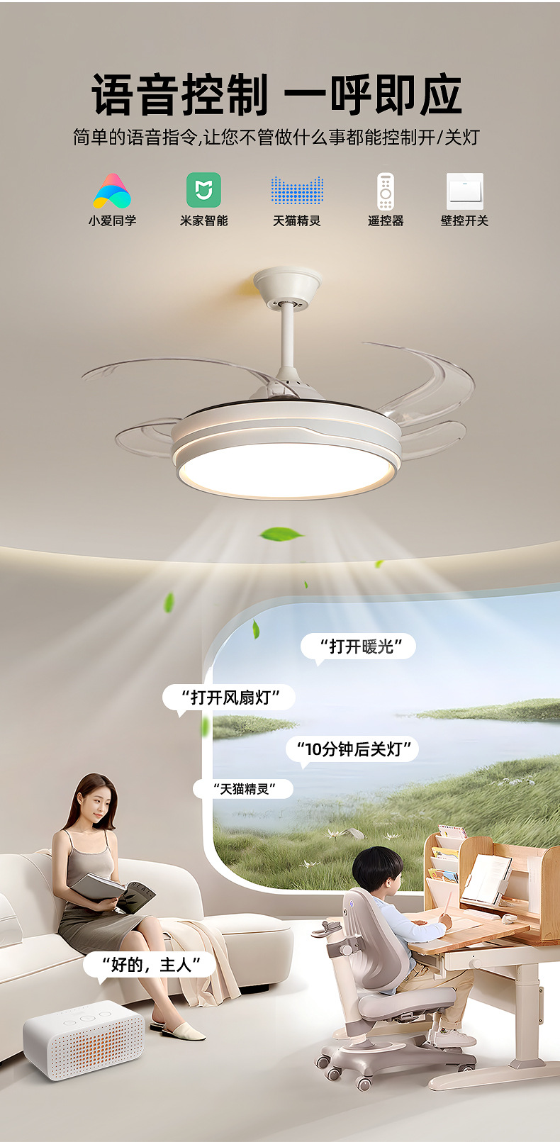 full spectrum ceiling fan lamp 50cm-support xiao-i control + remote control