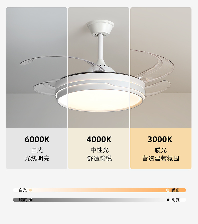 full spectrum chandelier fan lamp 50cm-variable light with three colors + remote control