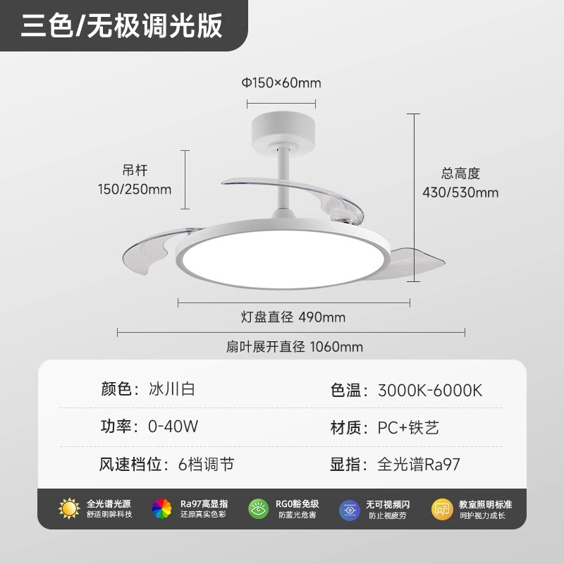 [highlight eye protection/wind upgrade] white-applicable 8-15m²-electrodeless dimming + remote control