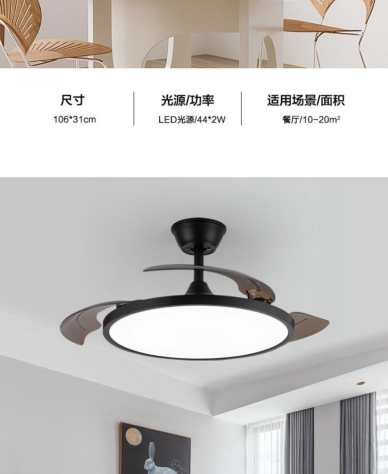 [highlight eye protection/wind upgrade] black-applicable to 8-15m²-electrodeless dimming + remote control