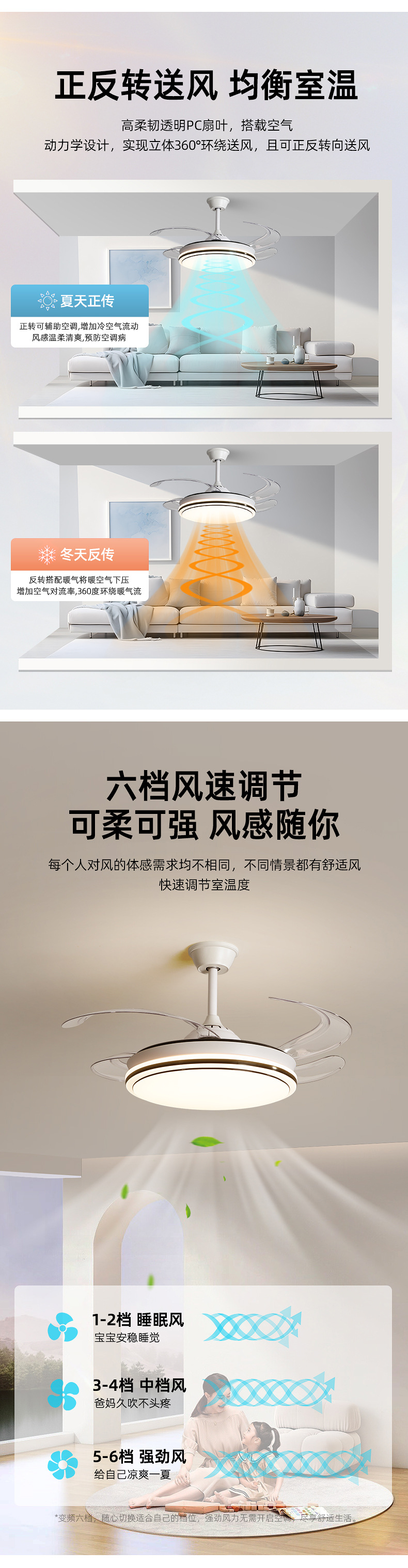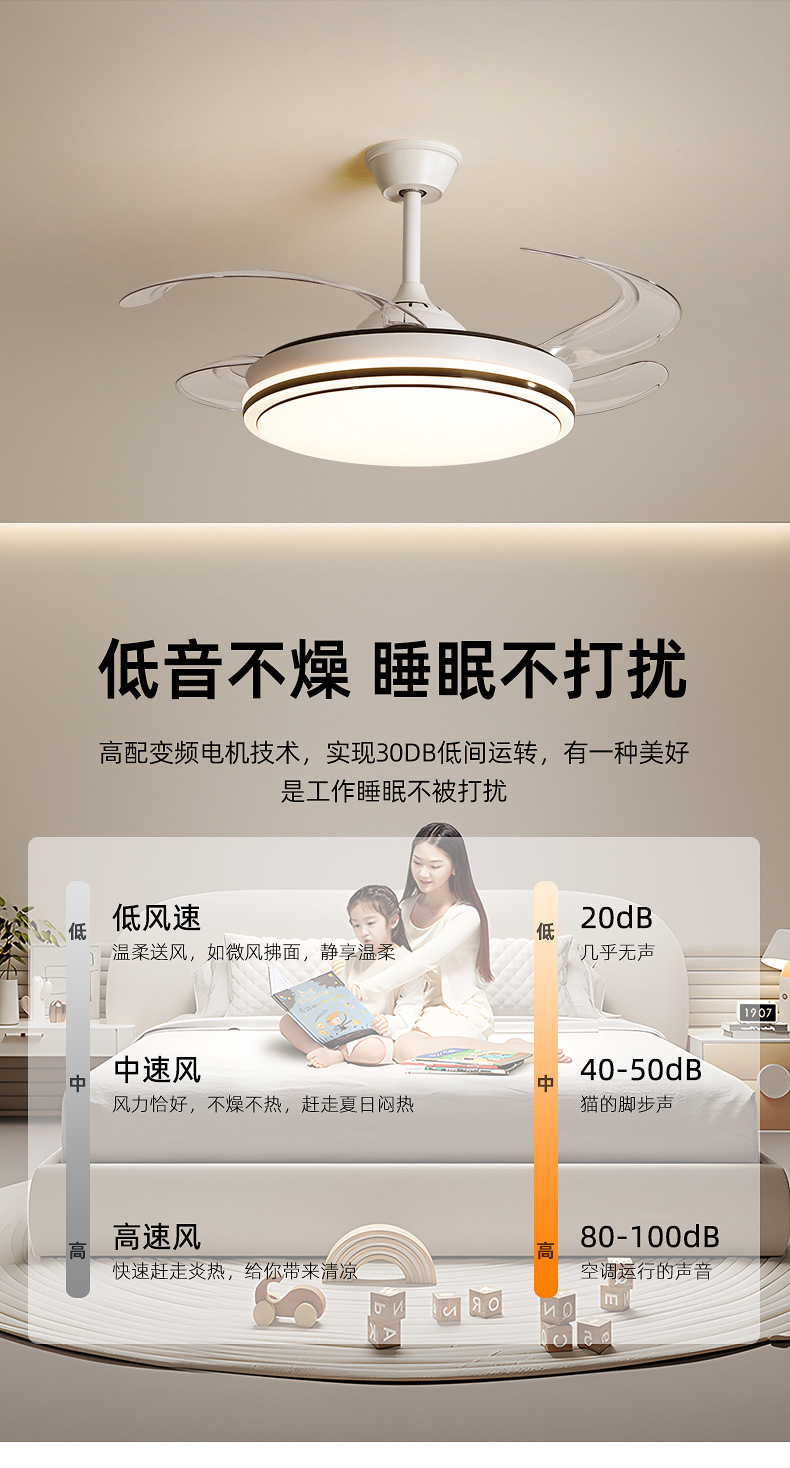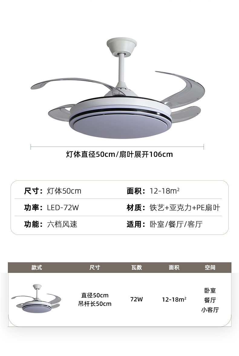 full spectrum chandelier fan lamp 50cm-offline voice control