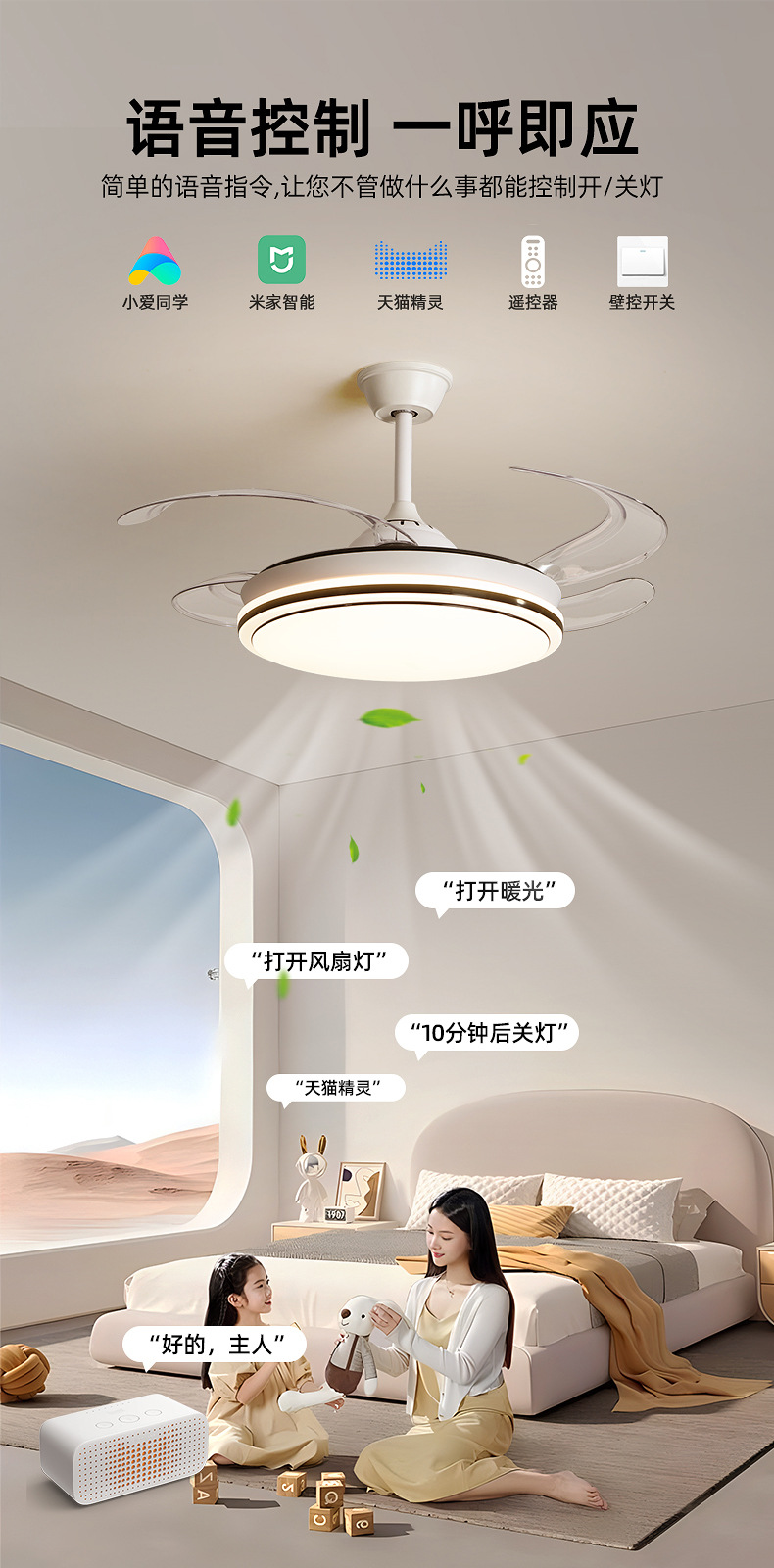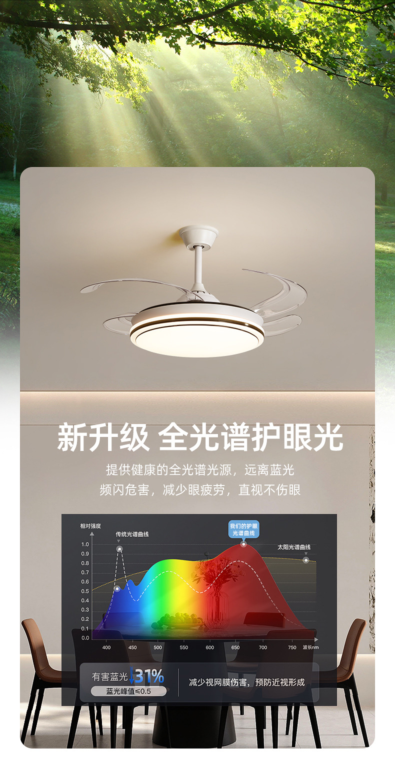 full spectrum ceiling fan lamp 50cm-support xiao-i control + remote control