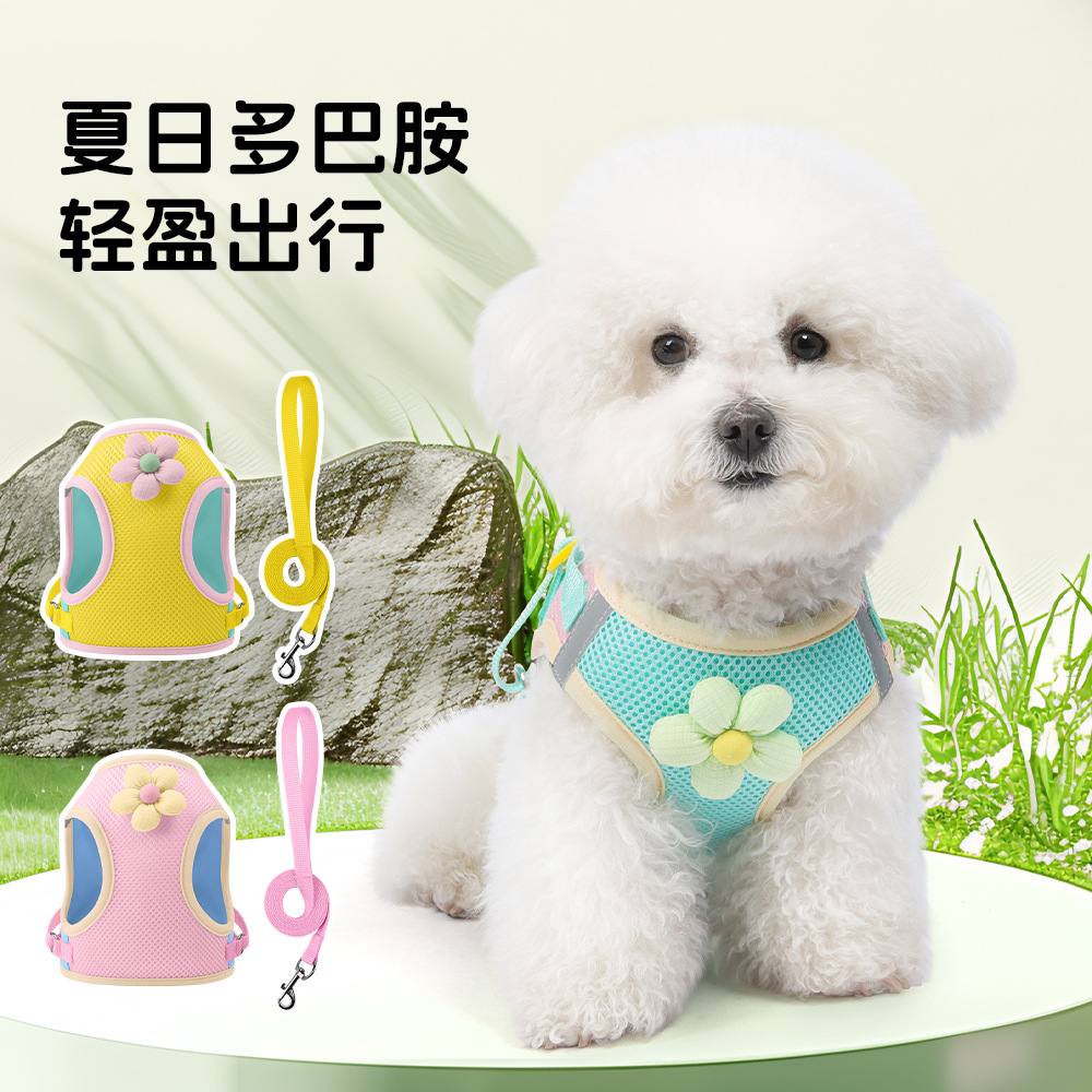 dog hand holding rope dopamine contrast color chest strap small dog bichon dog breast collar breathable burden reduction pulling rope hand holding rope