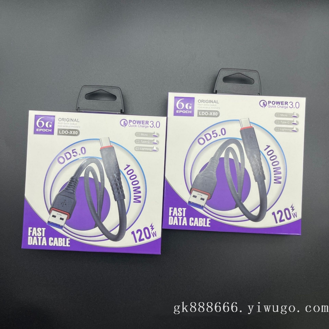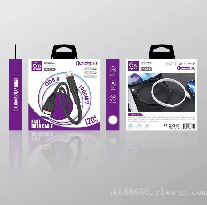 PVC Fast Charging Function 120W Data Cable for Apple I5/Android/TC Smartphone Qc3.0 中文版